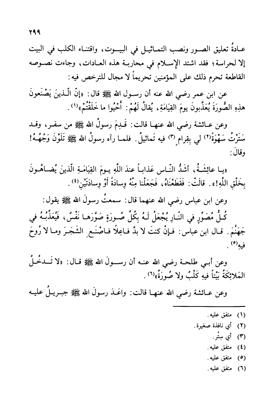وعن عائشة رضي الله عنها قالت: قدم رسول الله - صلى الله عليه وسلم - من سفر، وقد سترت شهوة (¬2) لي بقرام (¬3) فيه تماثيل. فلما رآه رسول الله - صلى الله عليه وسلم - تلون وجهه! وقال: