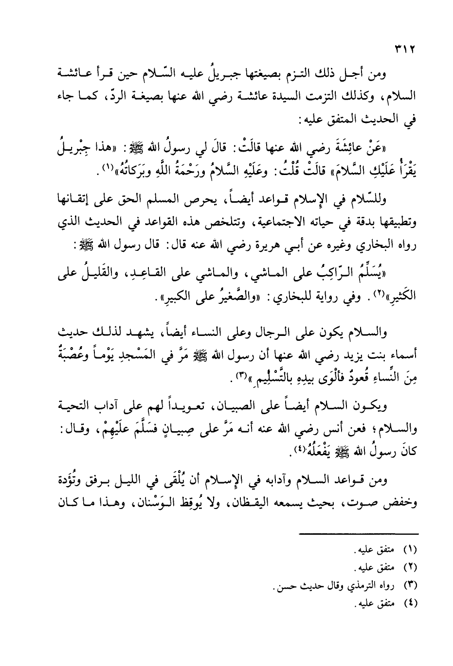 ومن أجل ذلك التزم بصيغتها جبريل عليه السلام حين قرأ عائشة السلام، وكذلك التزمت السيدة عائشة رضي الله عنها بصيغة الرد، كما جاء في الحديث المتفق عليه: