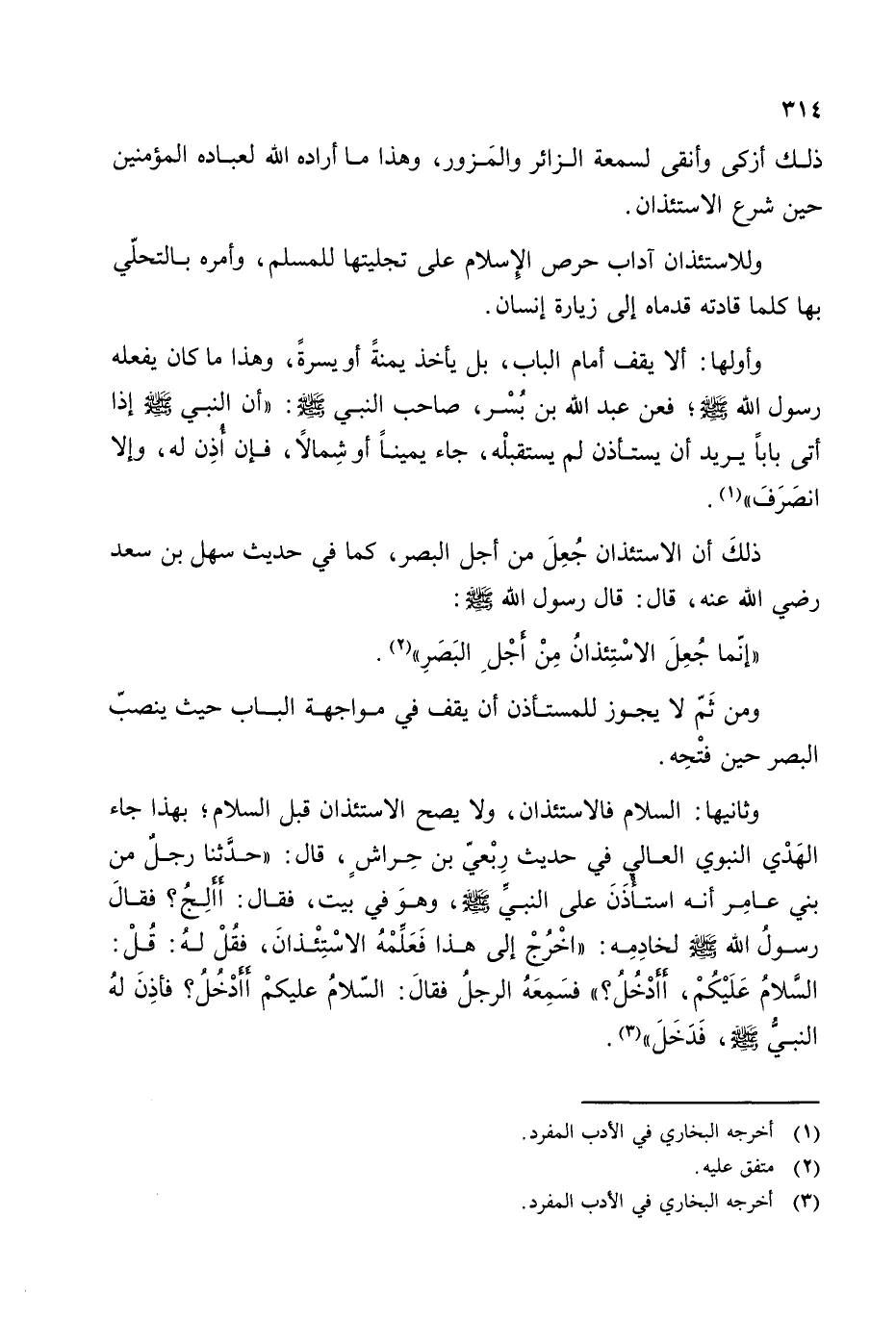 ومن هنا لا يجوز للمستأذن أن يقف في مواجهة الباب حيث ينصب البصر حين فتحه.