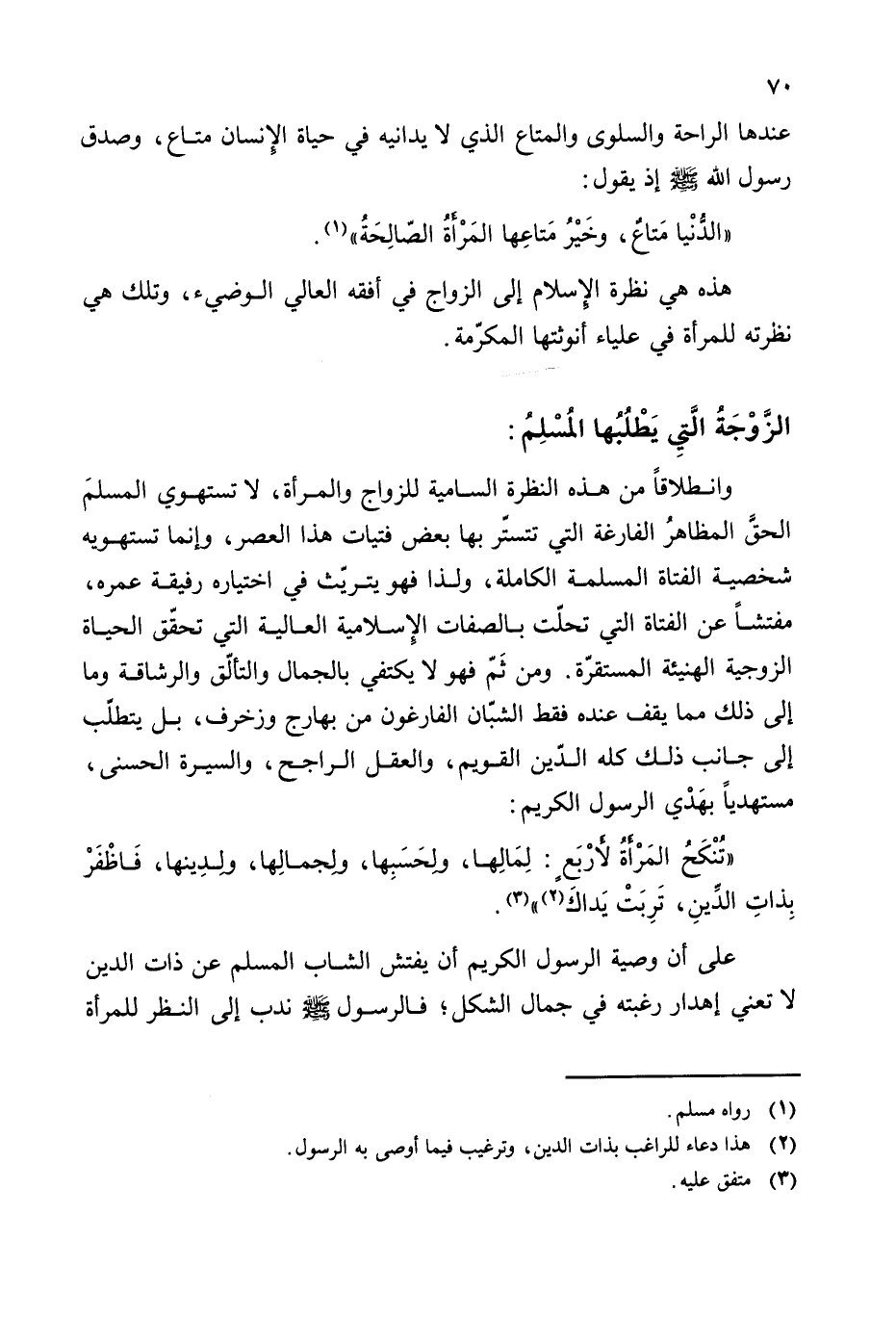((تنكح المرأة لأربع: لمالها، ولحسبها، ولجمالها، ولدينها، فاظفر بذات الدين، تربت يداك (¬2))) (¬3).