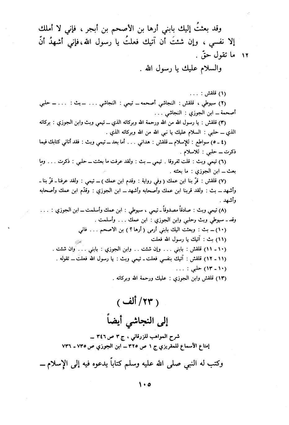 (2) سيوطي، قلقش: النجاشي أصحمه- تيمي: النجاشي ... - بث: ... - حلبي أصحمة- ابن الجوزي: النجاشي ...