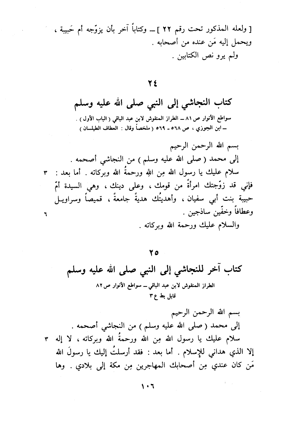 [ولعله المذكور تحت رقم 22]- وكتابا آخر بأن يزوّجه أم حبيبة، ويحمل إليه من عنده من أصحابه.