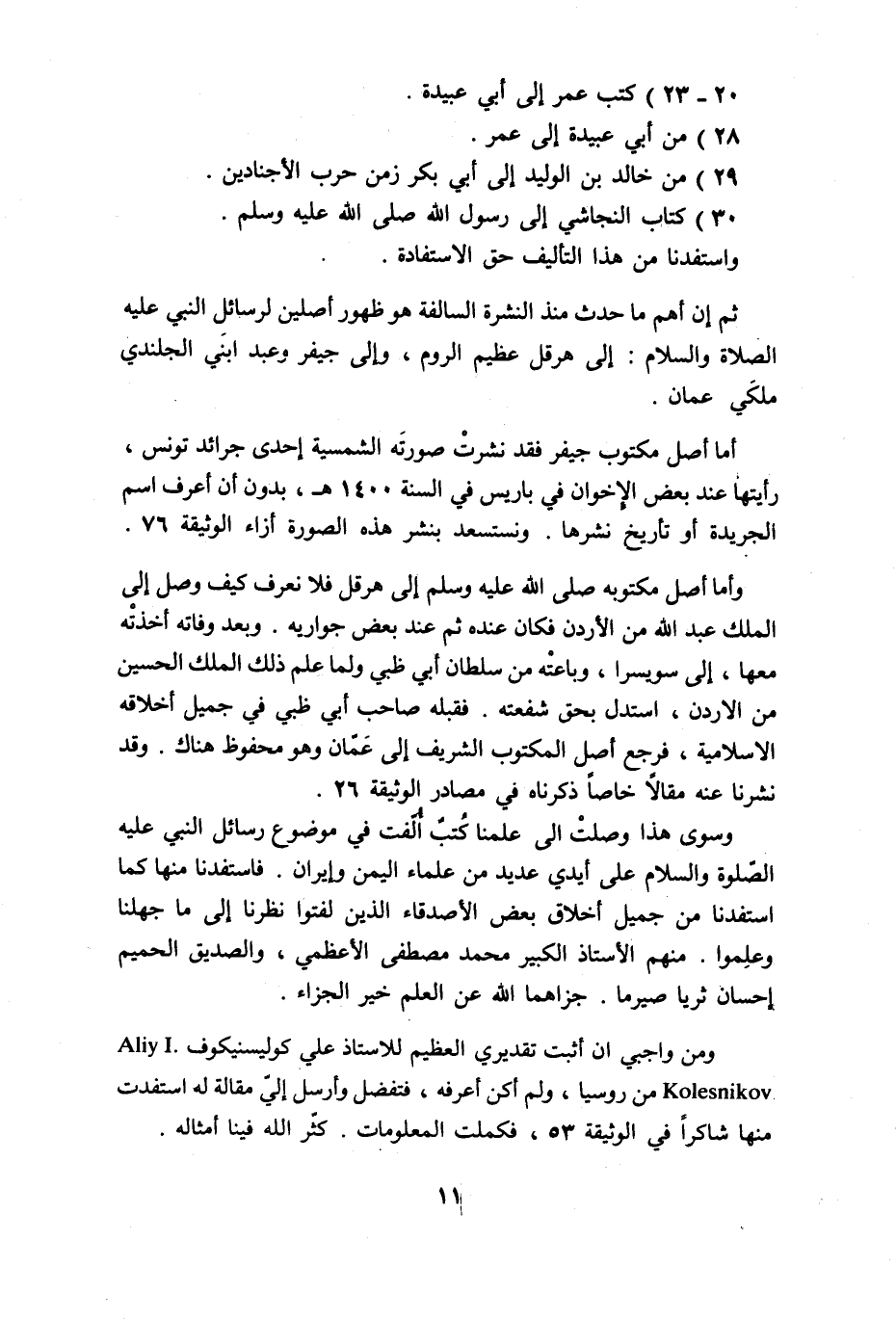 وسوى هذا وصلت الى علمنا كتب ألّفت في موضوع رسائل النبي عليه الصّلوة والسلام على أيدي عديد من علماء اليمن وإيران. فاستفدنا منها كما استفدنا من جميل أخلاق بعض الأصدقاء الذين لفتوا نظرنا إلى ما جهلنا وعلموا. منهم الأستاذ الكبير محمد مصطفى الأعظمي، والصديق الحميم إحسان ثريا صيرما. جزاهما الله عن العلم خير الجزاء.