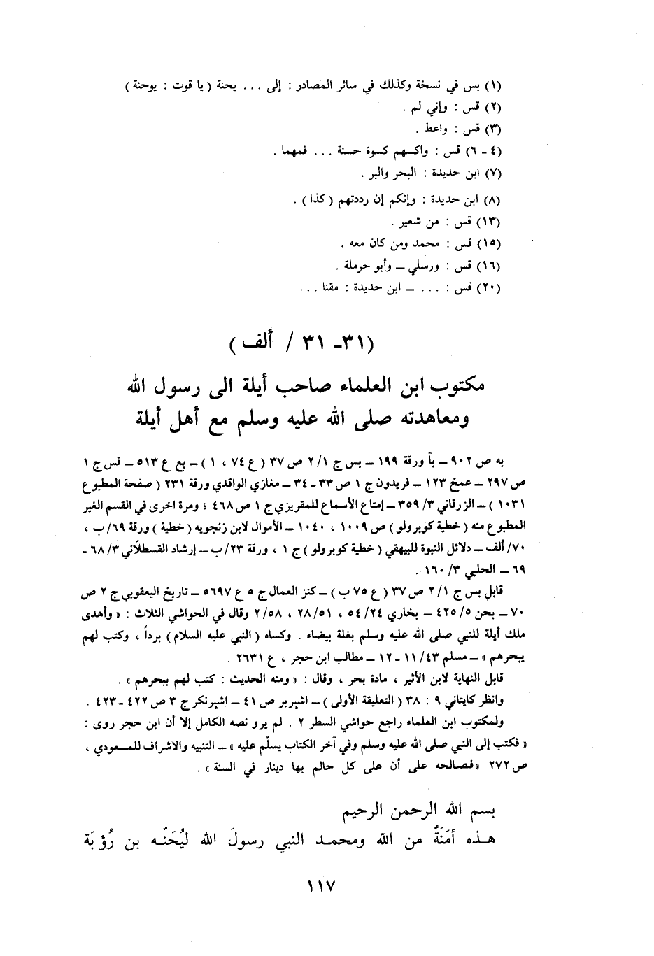 (31- 31/ ألف) مكتوب ابن العلماء صاحب أيلة الى رسول الله ومعاهدته صلى الله عليه وسلم مع أهل أيلة