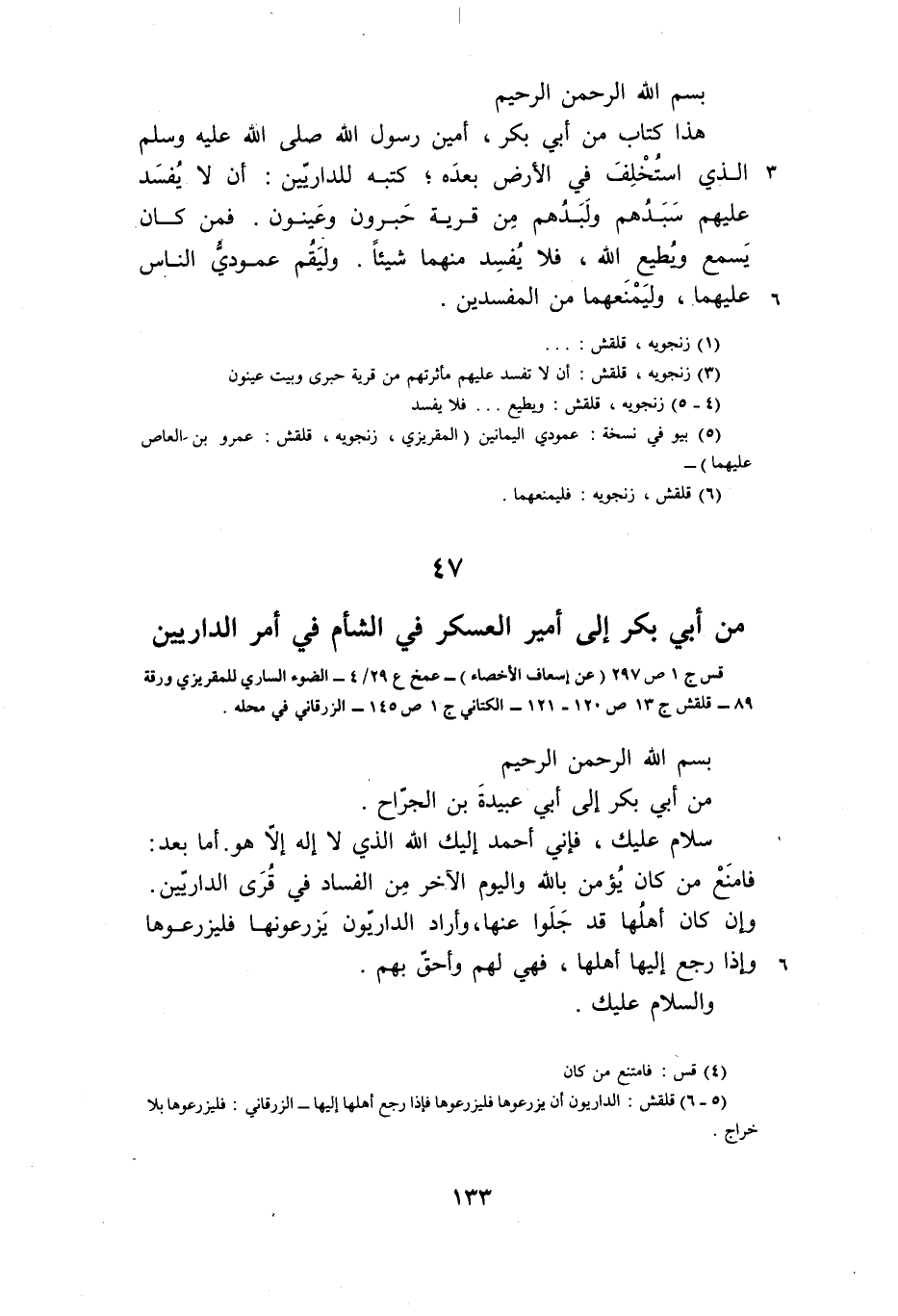 47 من أبي بكر إلى أمير العسكر في الشأم في أمر الداريين