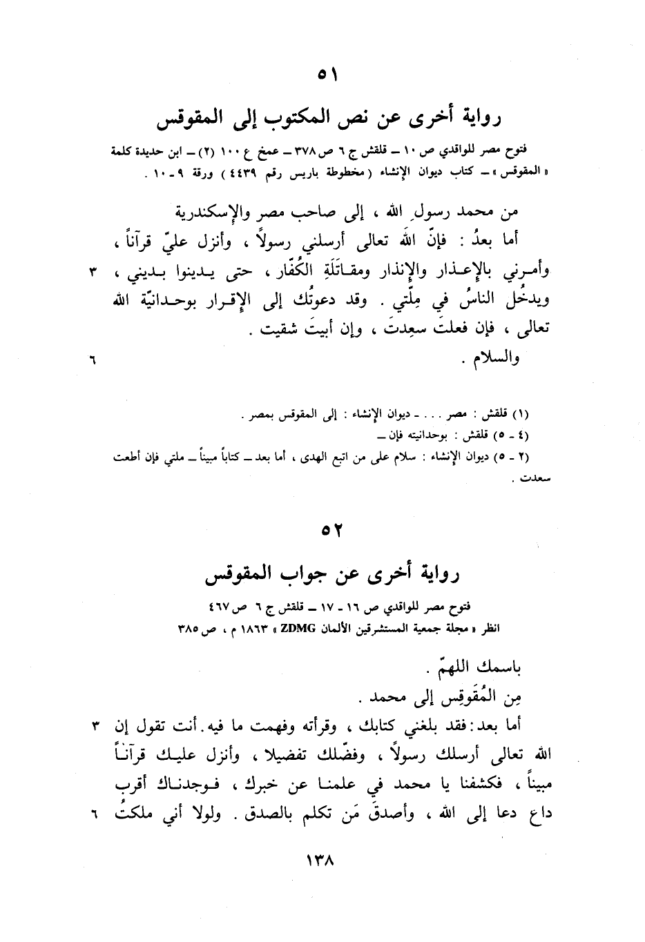 51 رواية أخرى عن نص المكتوب إلى المقوقس