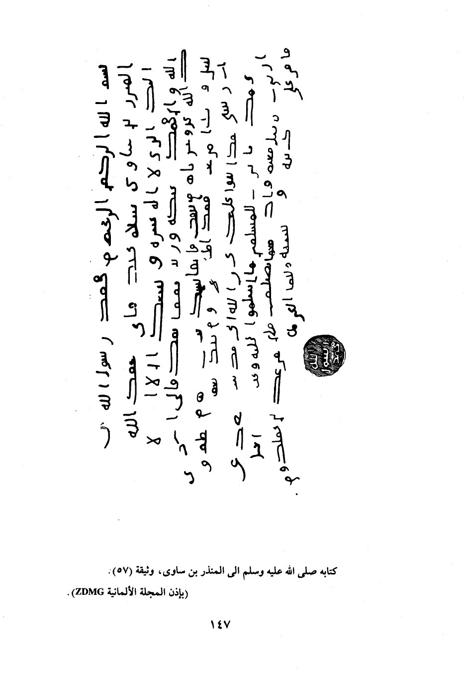 كتابه صلى الله عليه وسلم الى المنذر بن ساوى، وثيقة (57) .