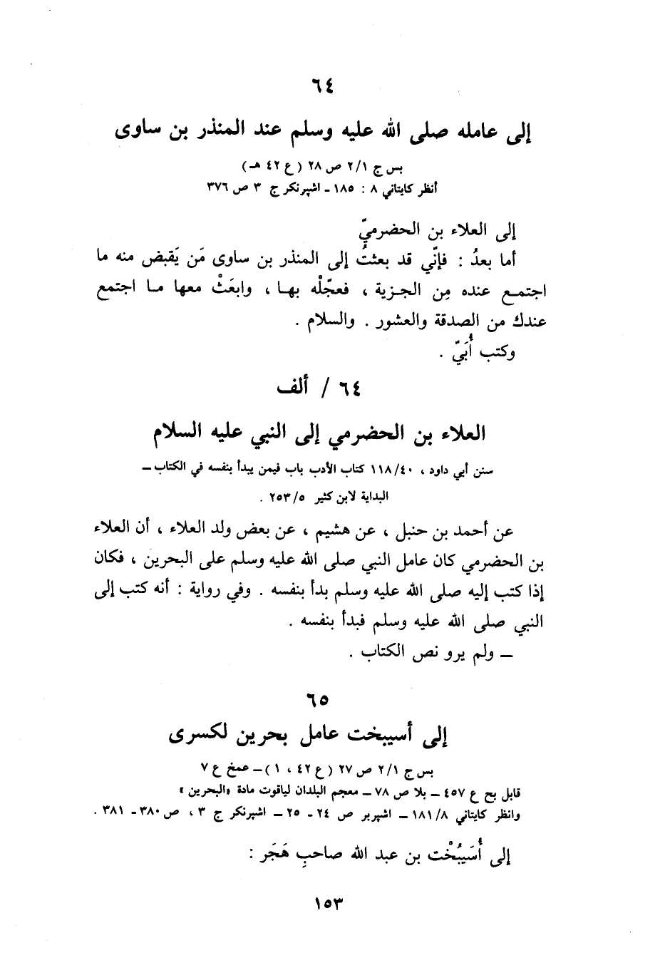 64 إلى عامله صلى الله عليه وسلم عند المنذر بن ساوى