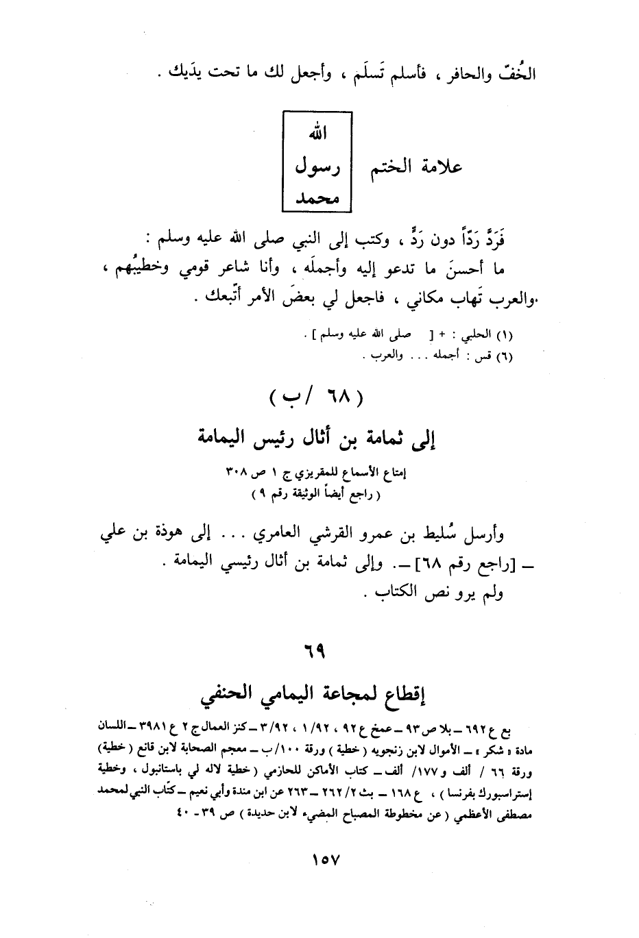 (68/ ب) إلى ثمامة بن أثال رئيس اليمامة