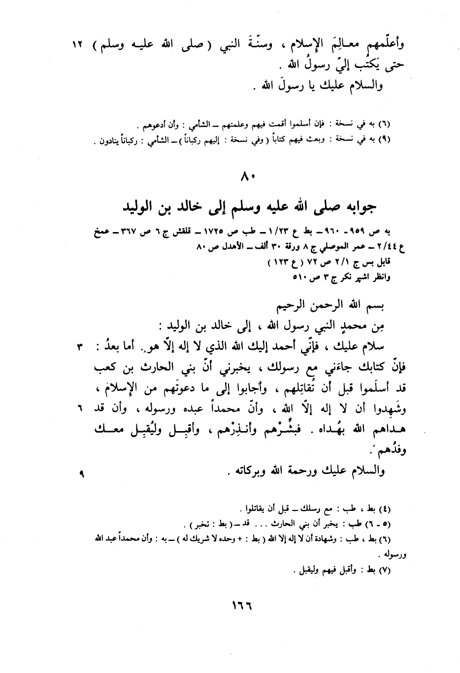 80 جوابه صلى الله عليه وسلم إلى خالد بن الوليد
