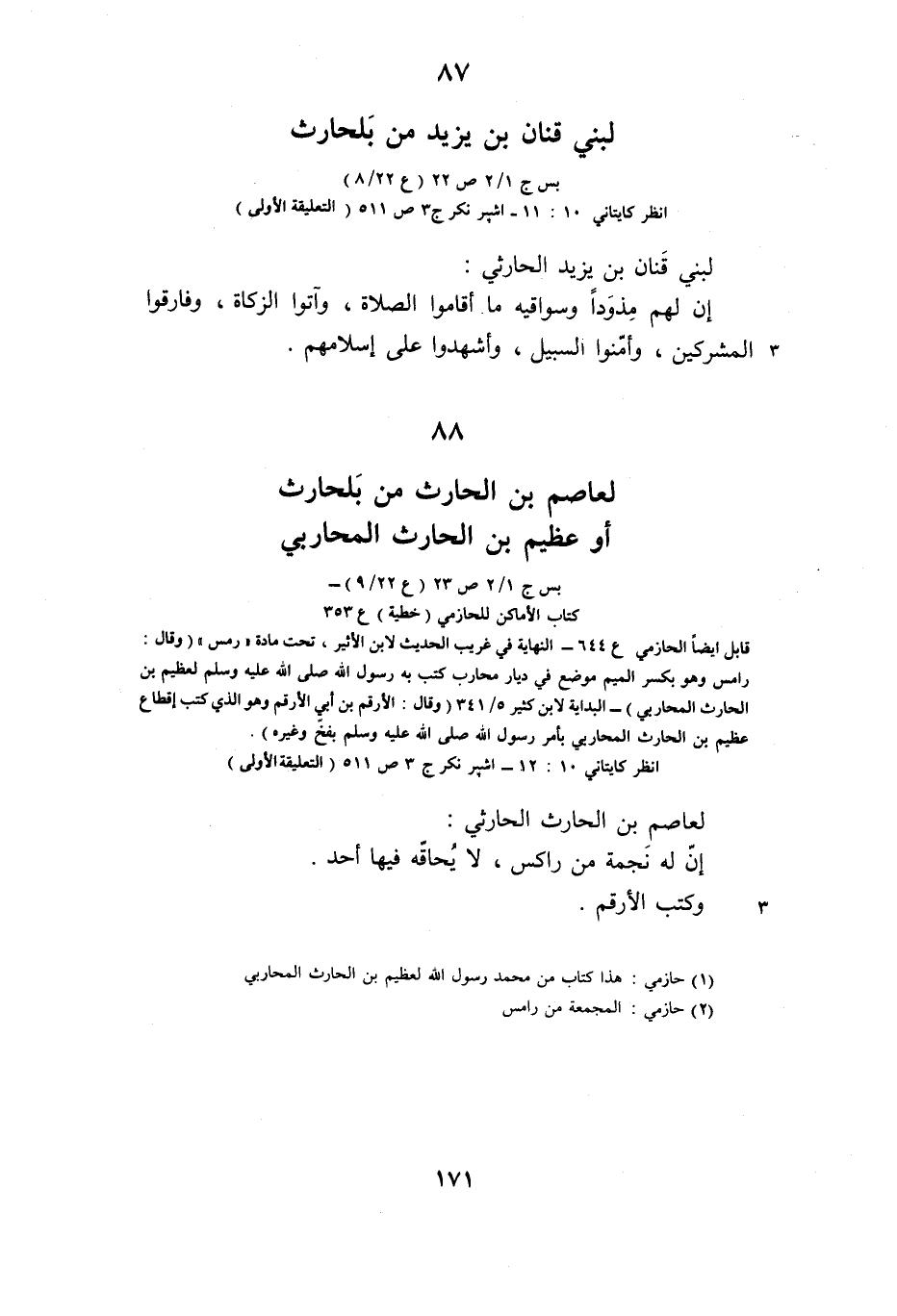 88 لعاصم بن الحارث من بلحارث أو عظيم بن الحارث المحاربي