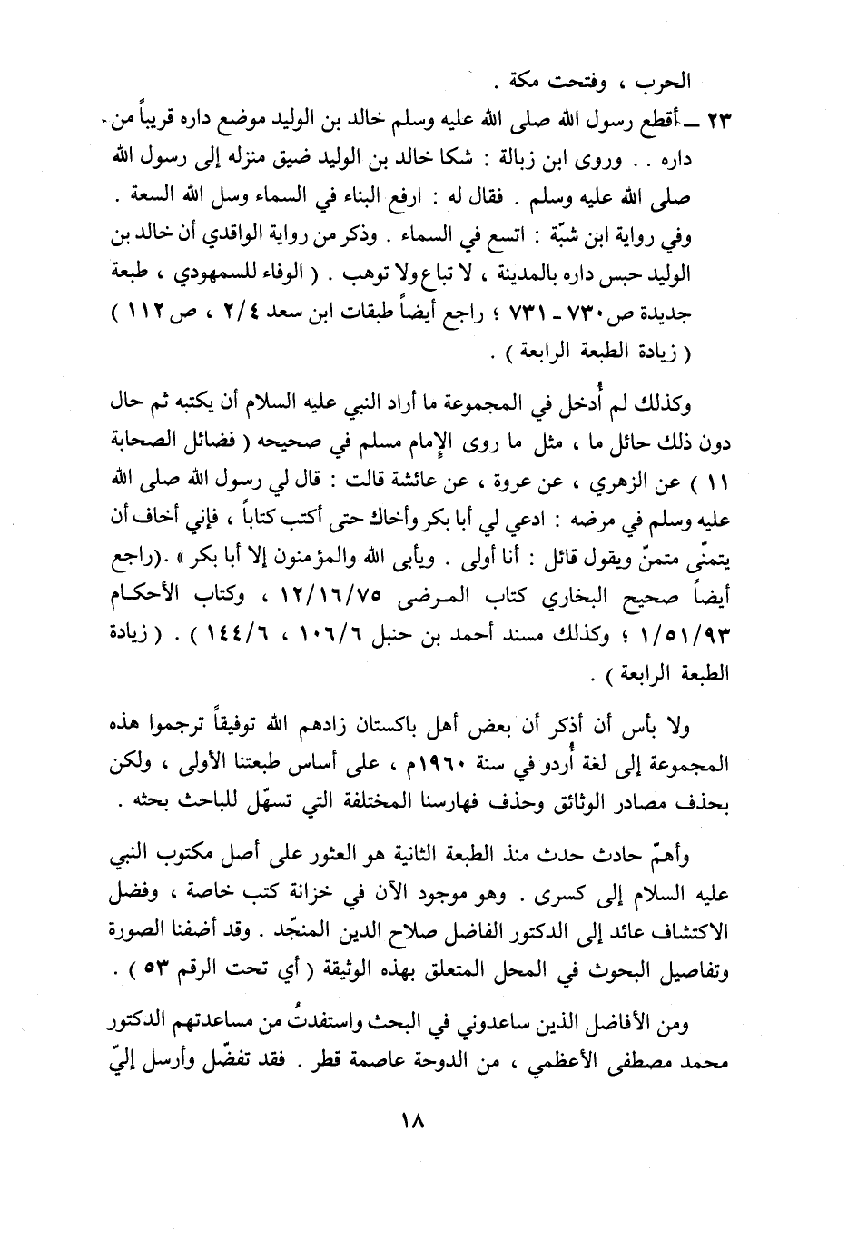 وأهمّ حادث حدث منذ الطبعة الثانية هو العثور على أصل مكتوب النبي عليه السلام إلى كسرى. وهو موجود الآن في خزانة كتب خاصة، وفضل الاكتشاف عائد إلى الدكتور الفاضل صلاح الدين المنجّد. وقد أضفنا الصورة وتفاصيل البحوث في المحل المتعلق بهذه الوثيقة (أي تحت الرقم 53) .