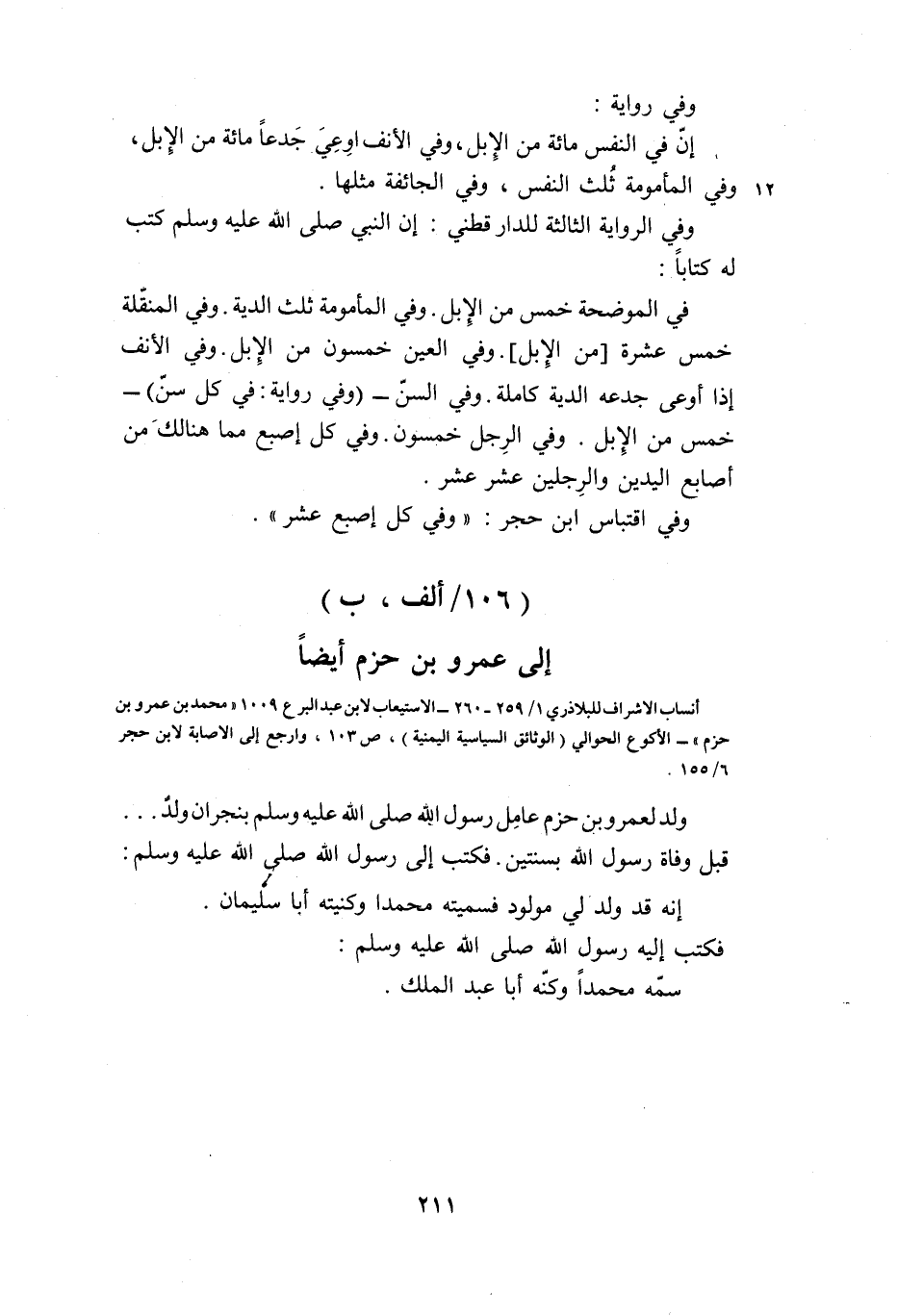 (106/ ألف، ب) إلى عمرو بن حزم أيضا
