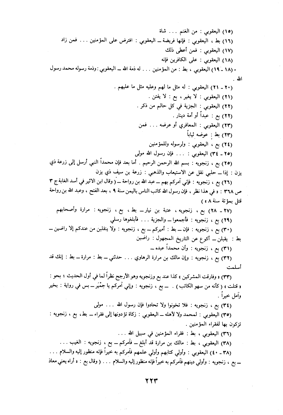 (38) اليعقوبي، بط: مالك بن مرارة قد أبلغ- فآمركم- بع، زنجويه: الغيب ...