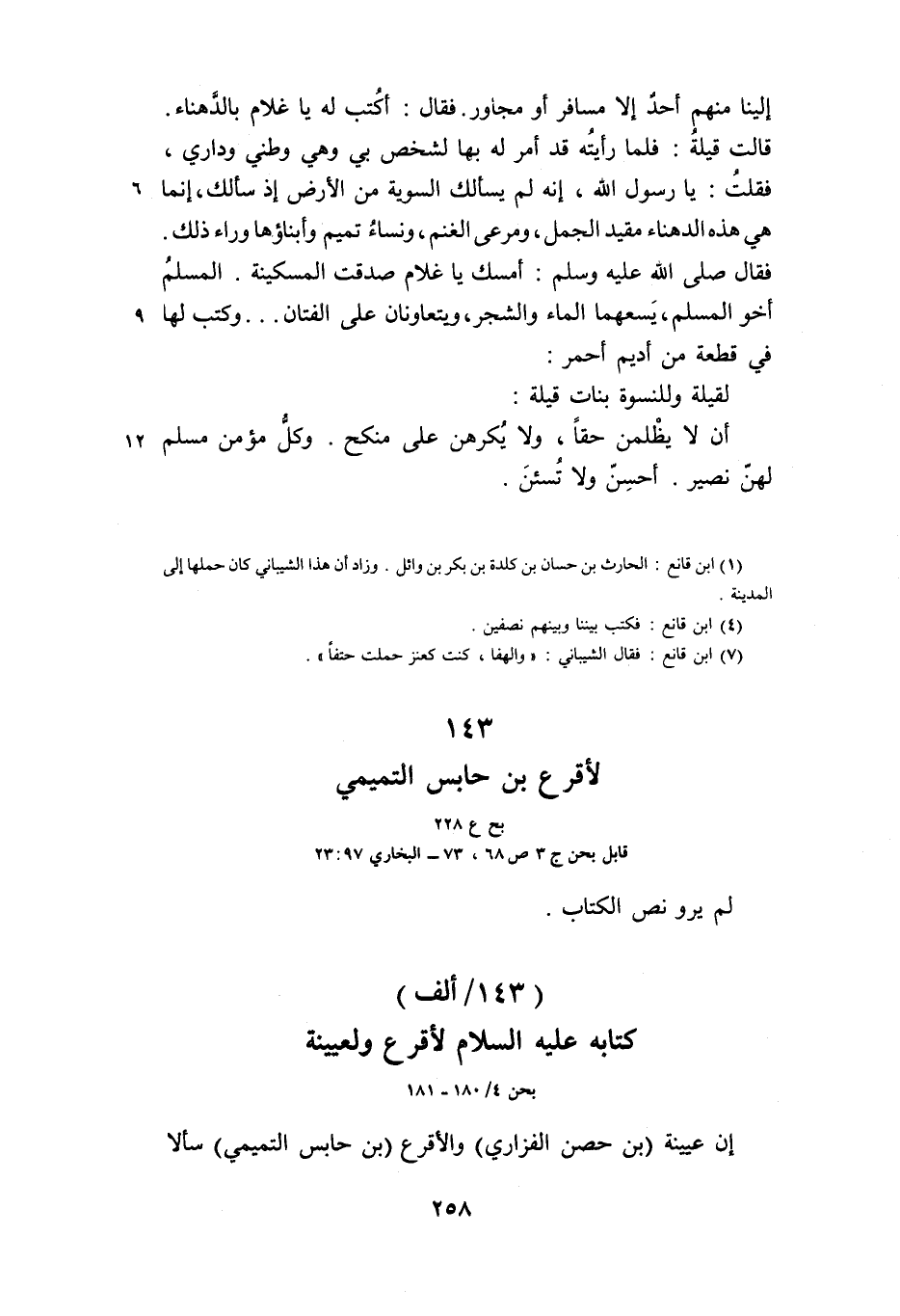 (143/ ألف) كتابه عليه السلام لأقرع ولعيينة