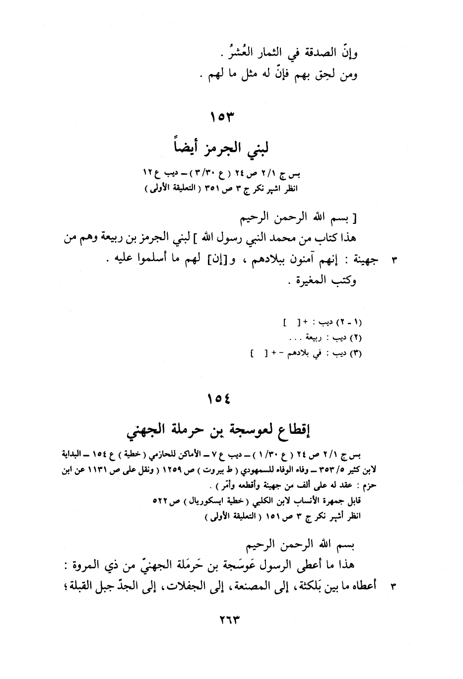 هذا كتاب من محمد النبي رسول الله] لبني الجرمز بن ربيعة وهم من جهينة: إنهم آمنون ببلادهم، و [إن] لهم ما أسلموا عليه.