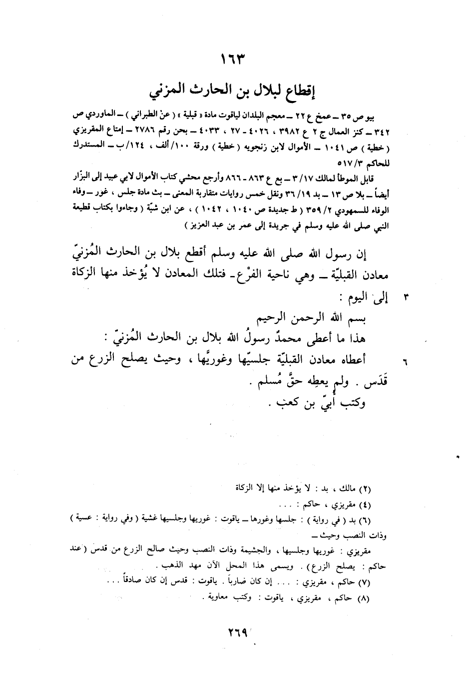 163 إقطاع لبلال بن الحارث المزني