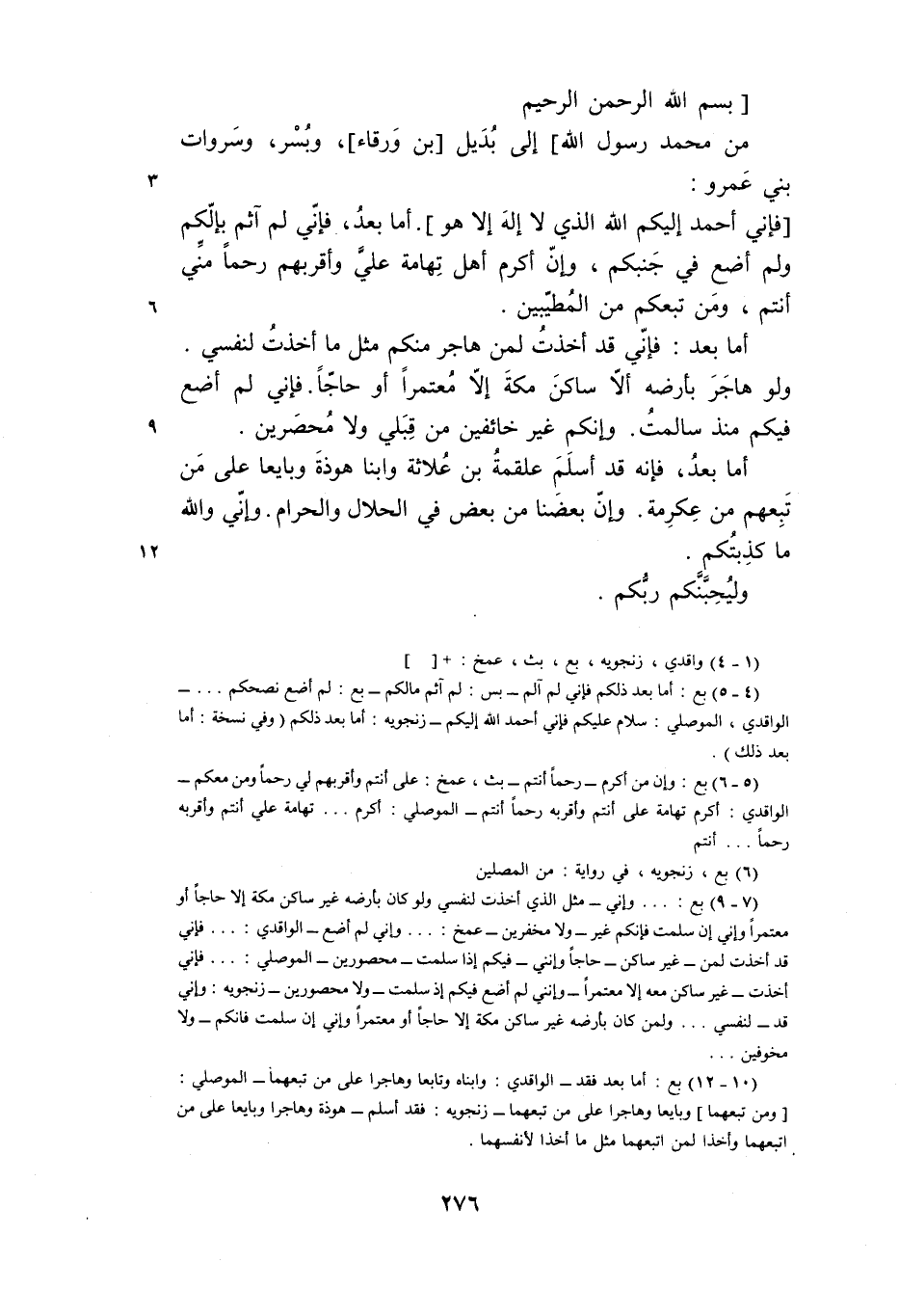 (10- 12) بع: أما بعد فقد- الواقدي: وابناه وتابعا وهاجرا على من تبعهما- الموصلي: