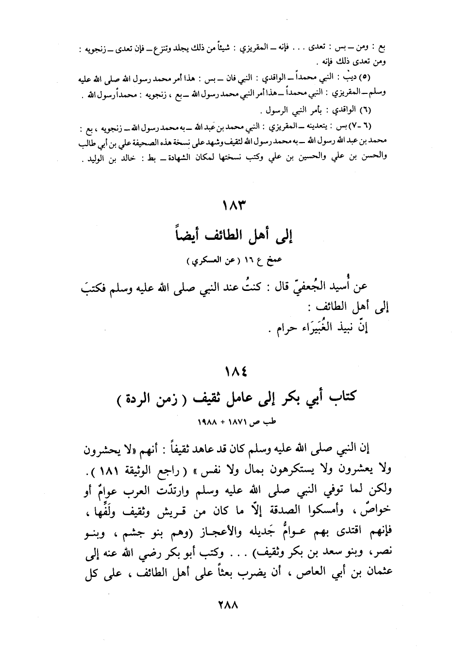 184 كتاب أبي بكر إلى عامل ثقيف (زمن الردة)