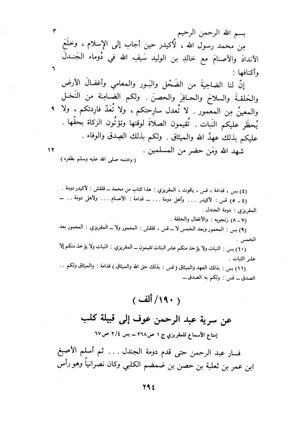(4) بس، قدامة، قس، ياقوت، المقريزي: هذا كتاب من محمد- قلقش: لأكيدر دومة.