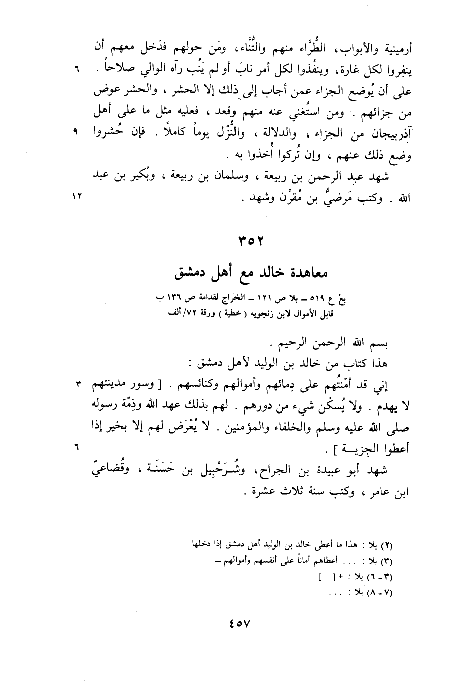 (2) بلا: هذا ما أعطى خالد بن الوليد أهل دمشق إذا دخلها