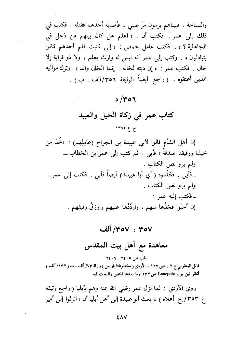 356/ د كتاب عمر في زكاة الخيل والعبيد