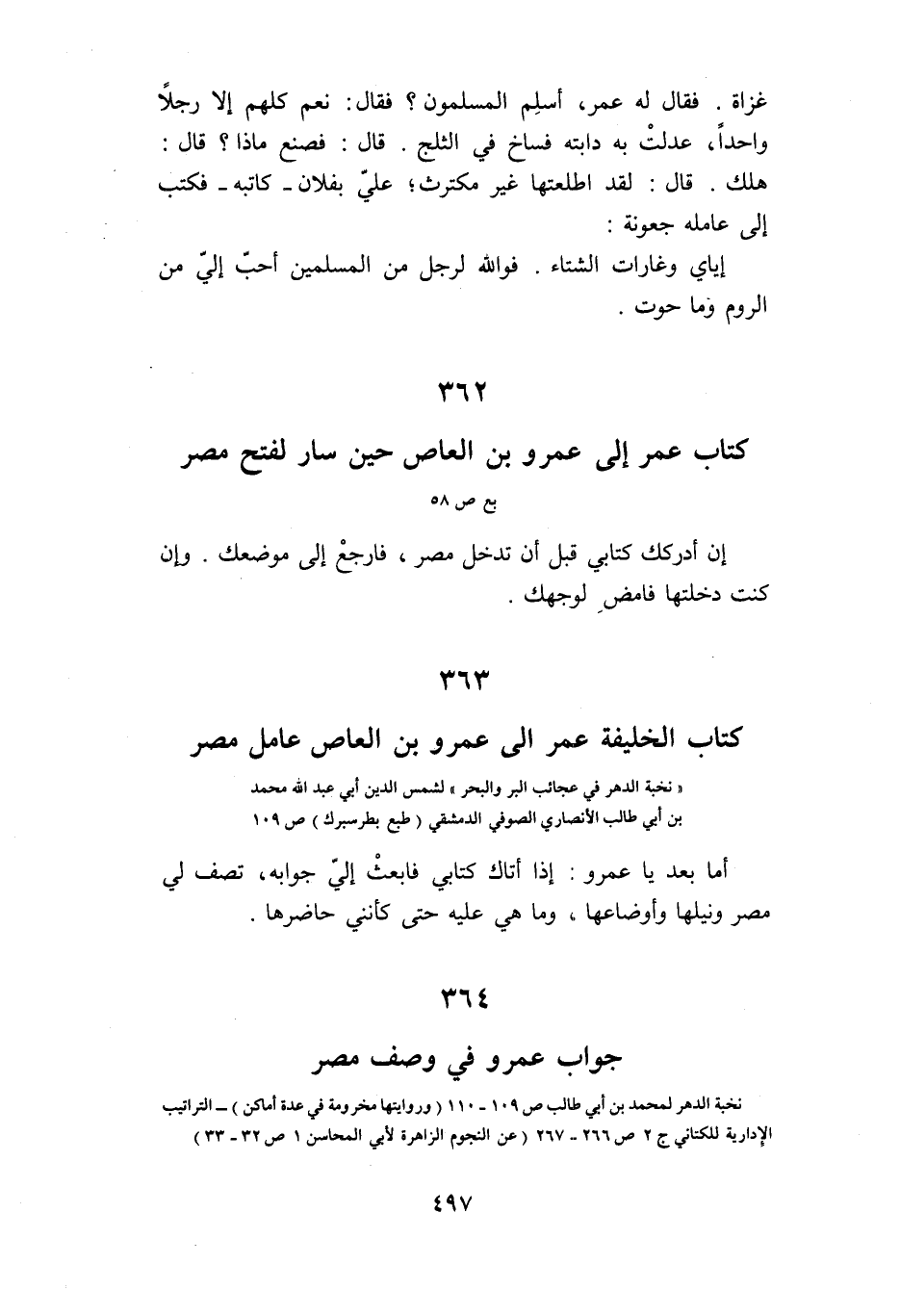 363 كتاب الخليفة عمر الى عمرو بن العاص عامل مصر