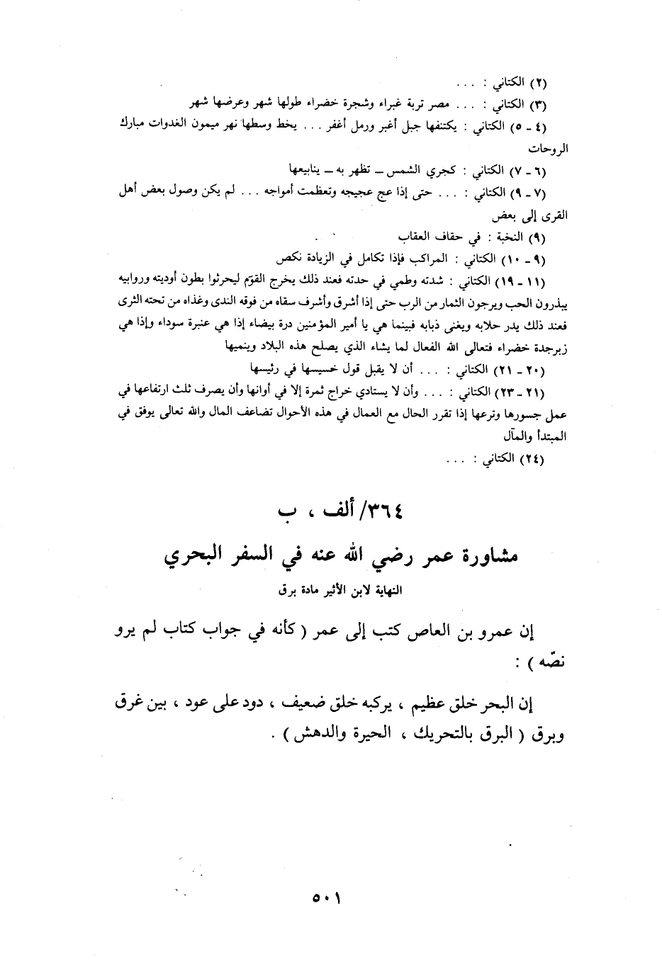 364/ ألف، ب مشاورة عمر رضي الله عنه في السفر البحري