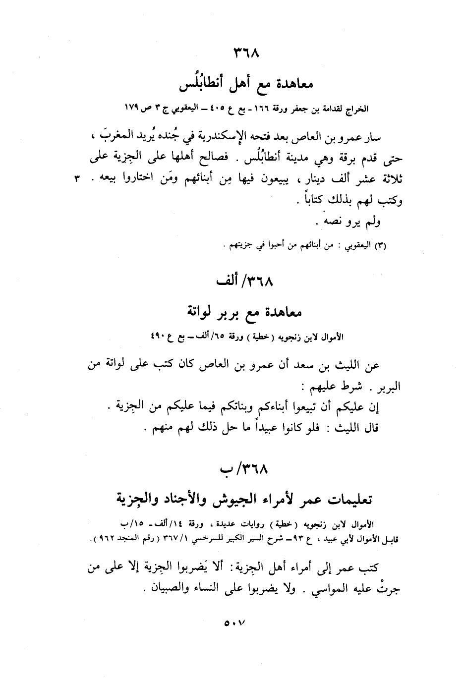 368/ ب تعليمات عمر لأمراء الجيوش والأجناد والجزية