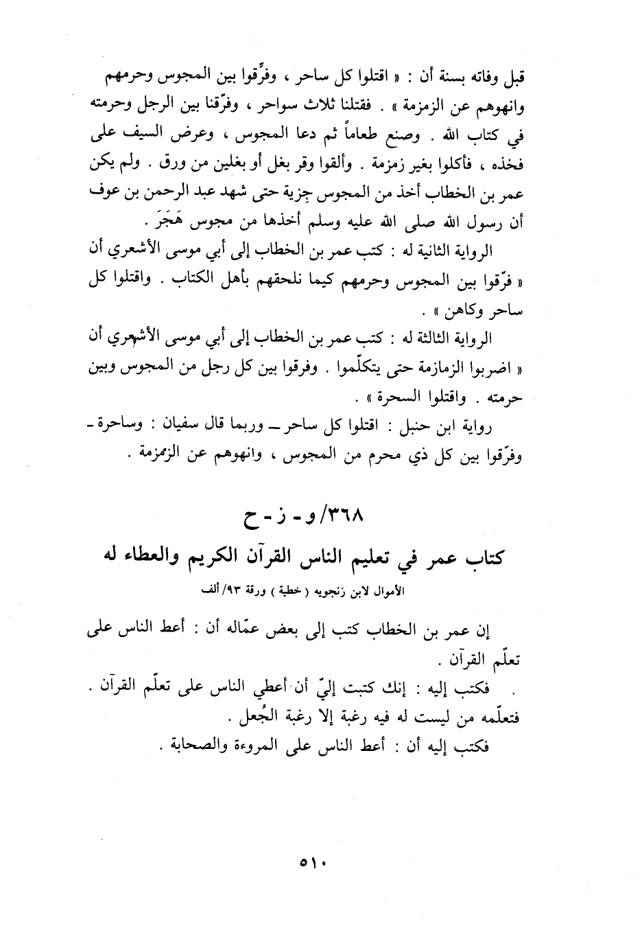 368/ وز- ح كتاب عمر في تعليم الناس القرآن الكريم والعطاء له