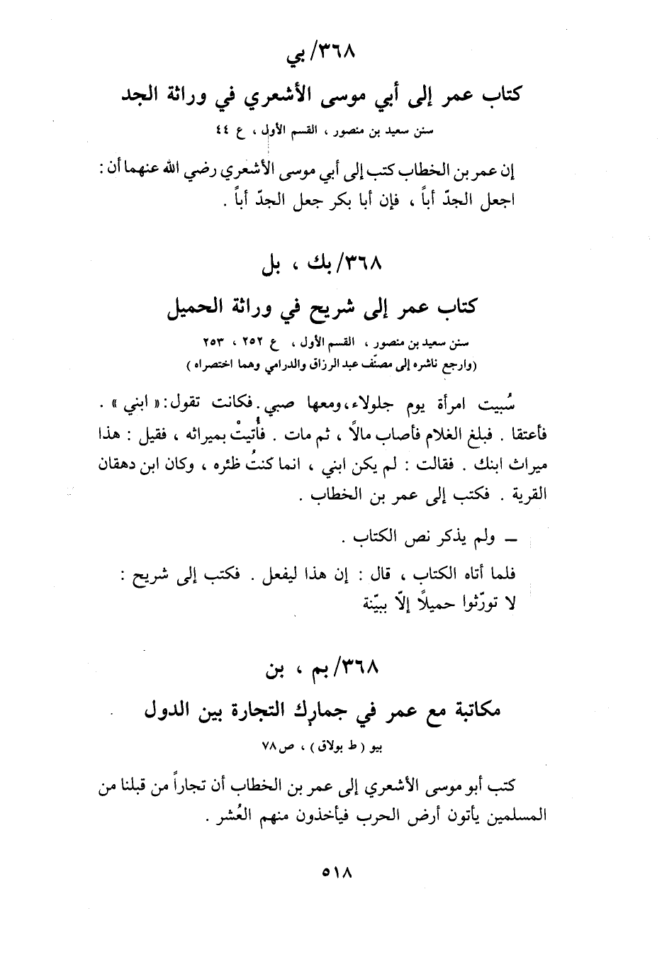 368/ بي كتاب عمر إلى أبي موسى الأشعري في وراثة الجد