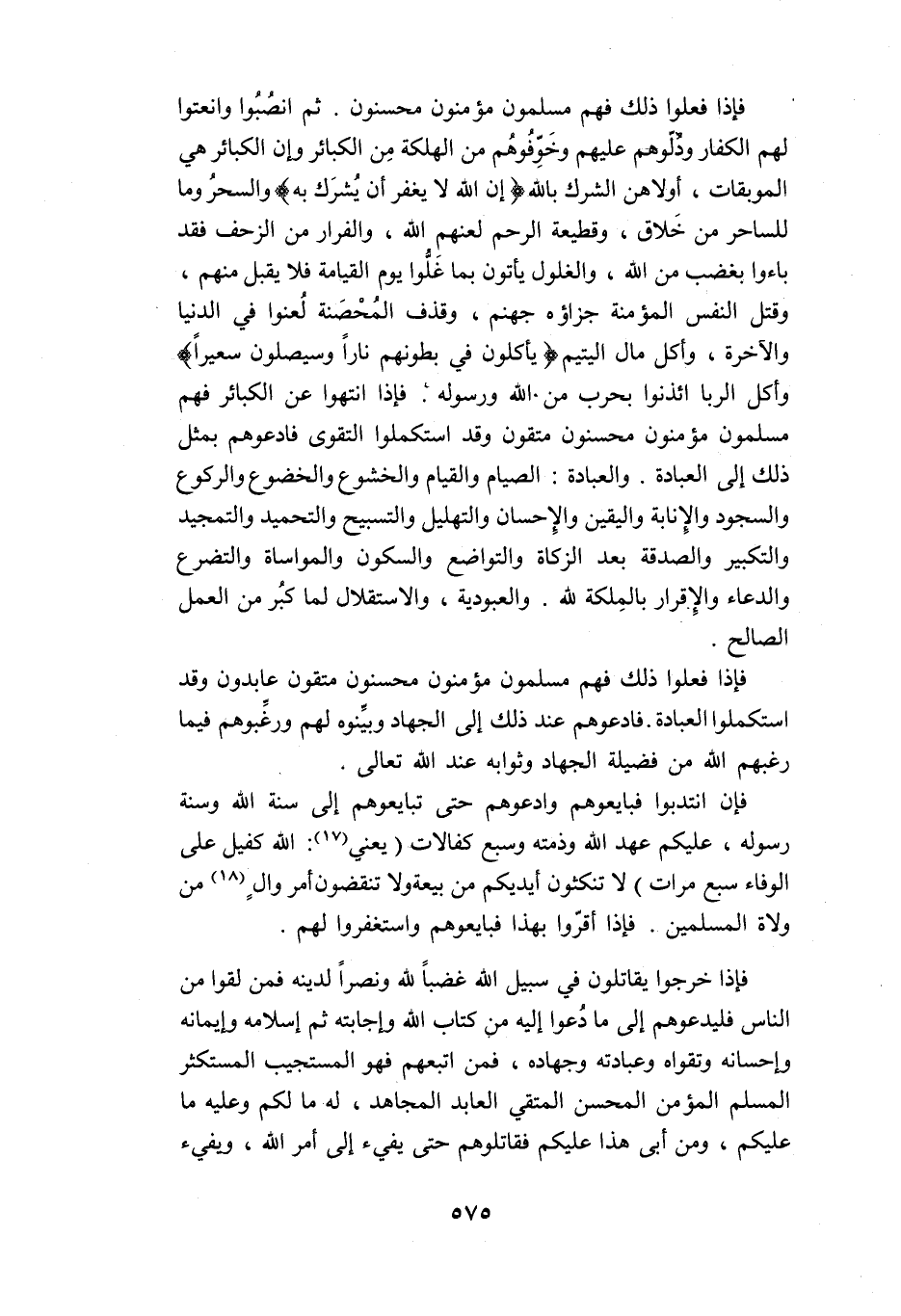 فإذا فعلوا ذلك فهم مسلمون مؤمنون محسنون متقون عابدون وقد استكملوا العبادة. فادعوهم عند ذلك إلى الجهاد وبيّنوه لهم ورغّبوهم فيما رغبهم الله من فضيلة الجهاد وثوابه عند الله تعالى.