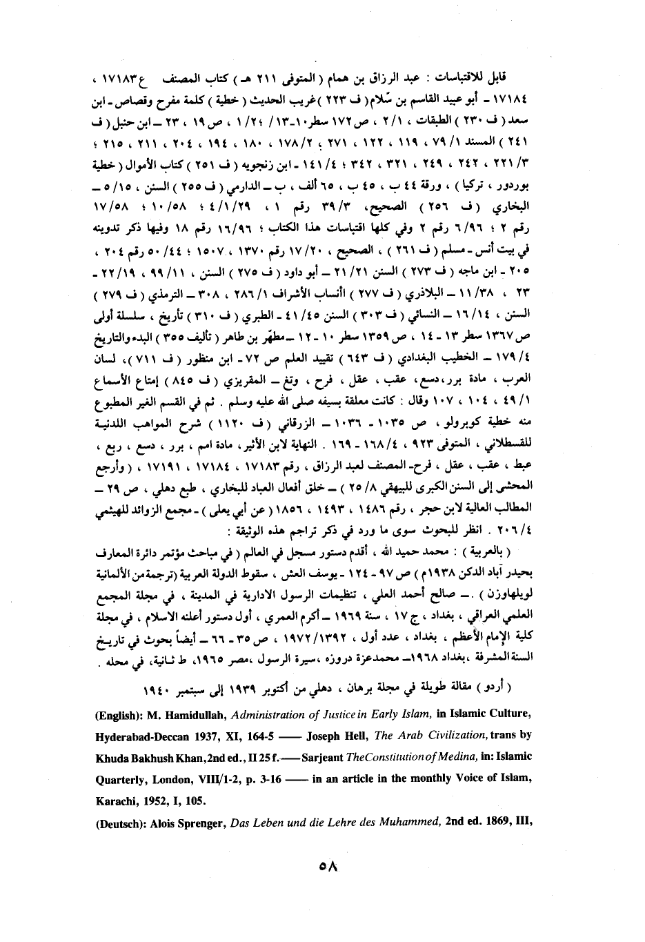 Hyderabad- Deccan 1937, XI, 164- 5- Joseph Hell, The Arab Civilization, trans by Khuda Bakhush Khan, 2 nd ed., II 25 F.- Sarjeant The Constiution of Medina, in:Islamic