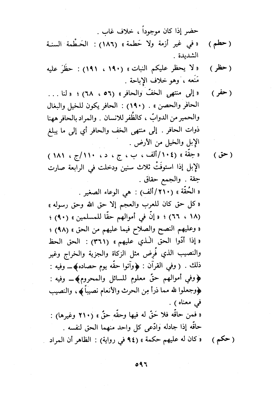 (حفر) «إلى منتهى الخفّ والحافر» (56، 68) ؛ «لنا ...