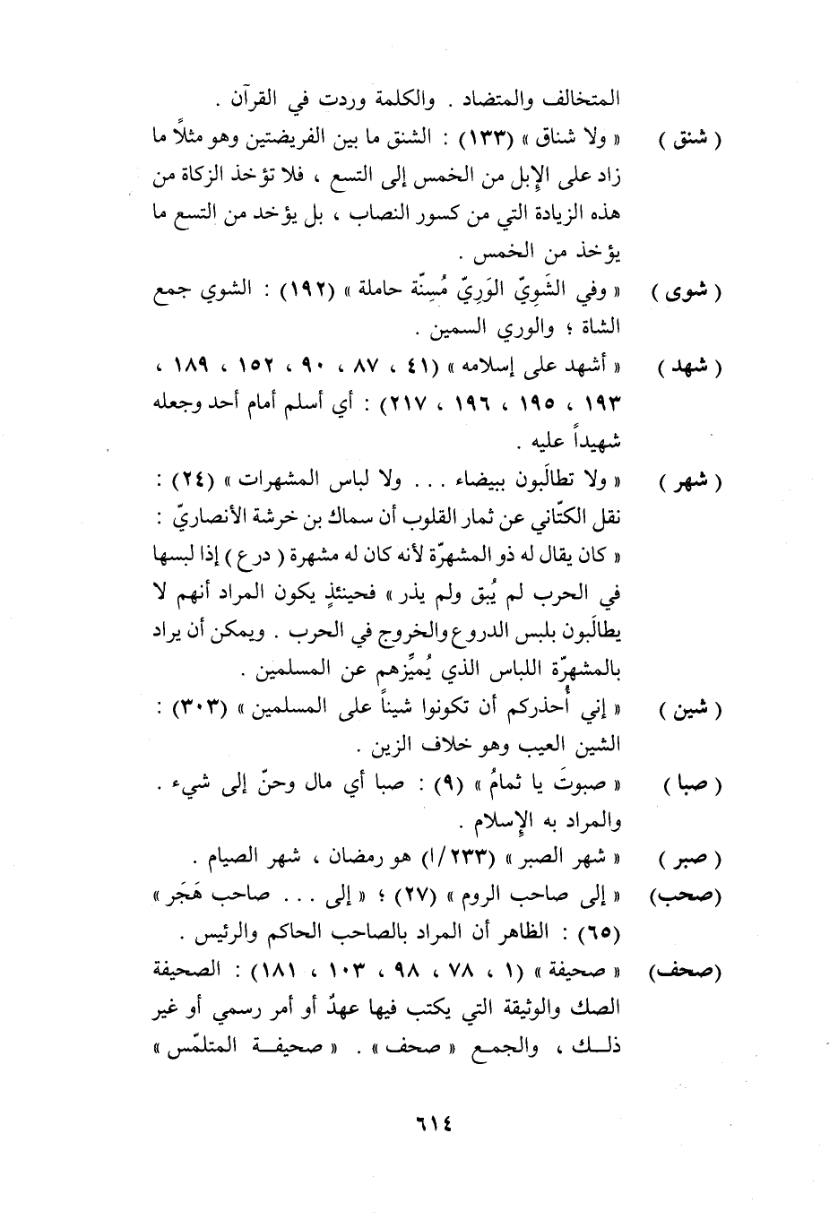 (شهد) «أشهد على إسلامه» (41، 87، 90، 152، 189، 193، 195، 196، 217) : أي أسلم أمام أحد وجعله شهيدا عليه.