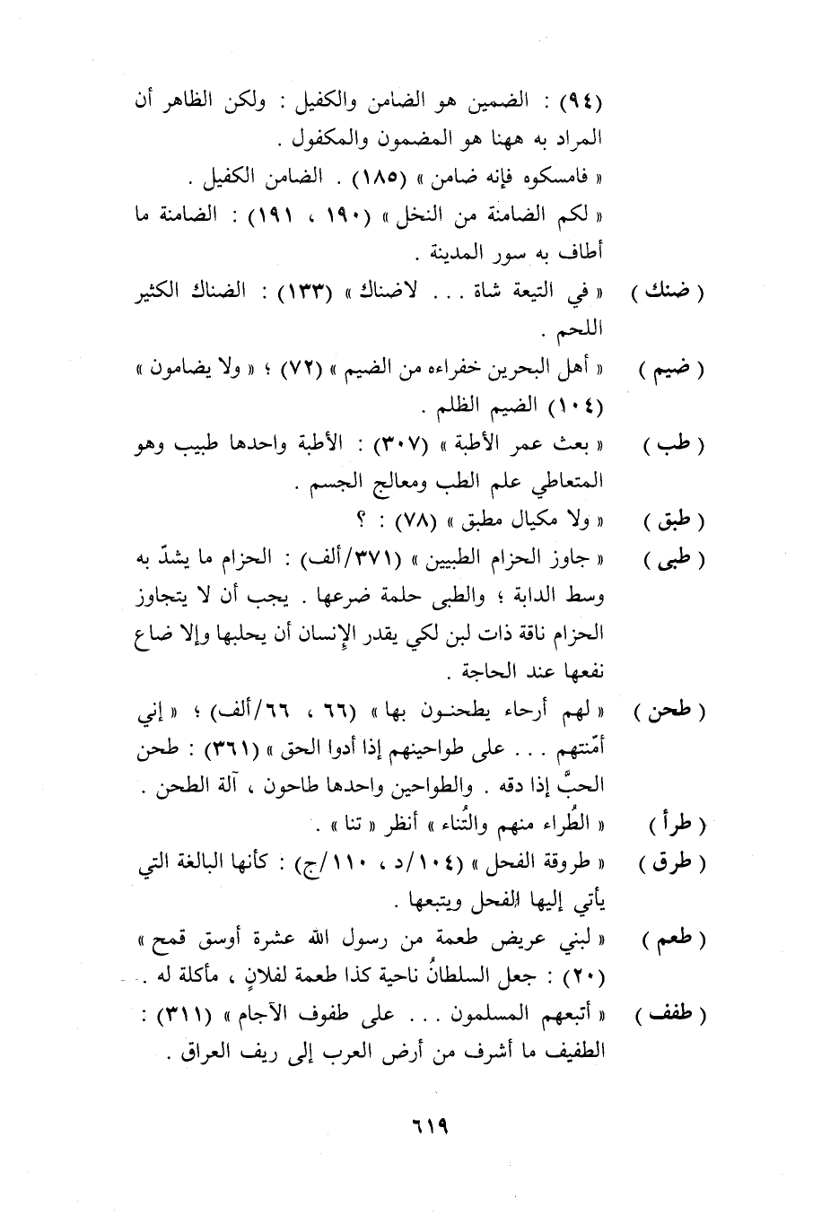 (ضيم) «أهل البحرين خفراءه من الضيم» (72) ؛ «ولا يضامون» (104) الضيم الظلم.