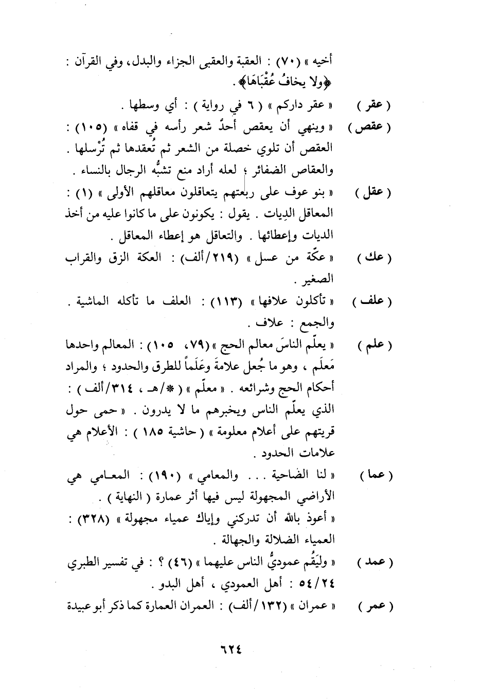 (عمد) «وليقم عموديّ الناس عليهما» (46) ؟: في تفسير الطبري 24/ 54: أهل العمودي، أهل البدو.