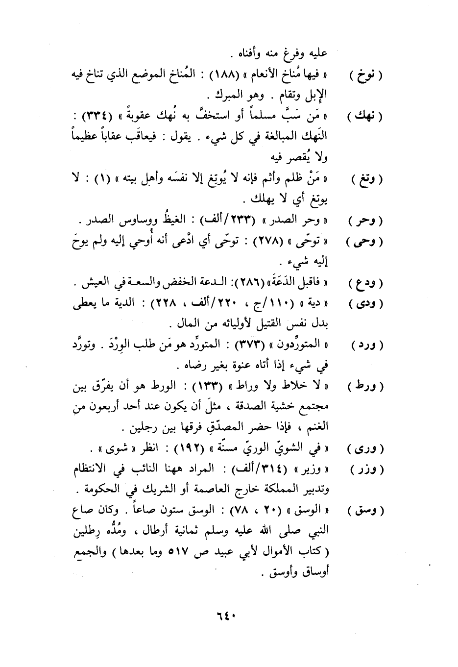 (وحى) «توحّى» (278) : توحّى أي ادّعى أنه أوحي إليه ولم يوح إليه شيء.