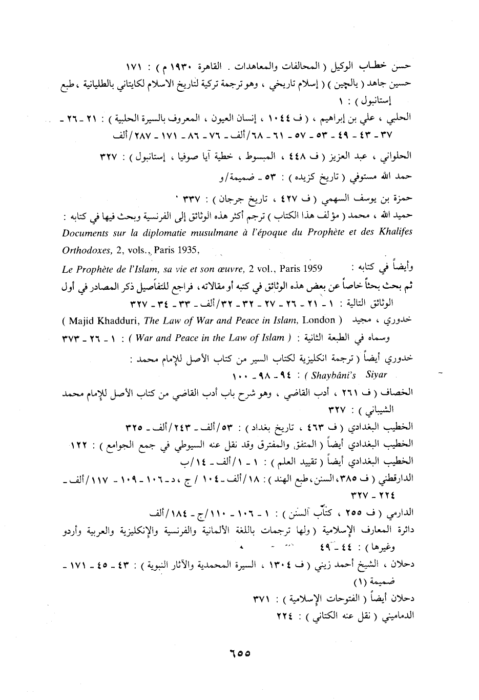 Documents sur la diplomatie musulmane a lepoque du Prophete et des Khalifes Orthodoxes, 2, vols.Paris 1935,