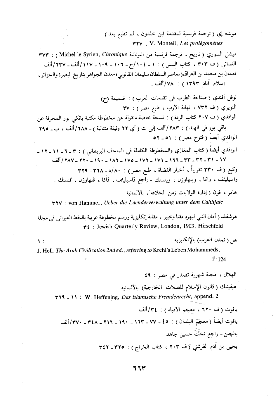 هيفيننك (قانون الإسلام للصلات الخارجية) بالألمانيةW.Heffening ,Das islamische Fremdenrecht ,append. 2: 11 -963