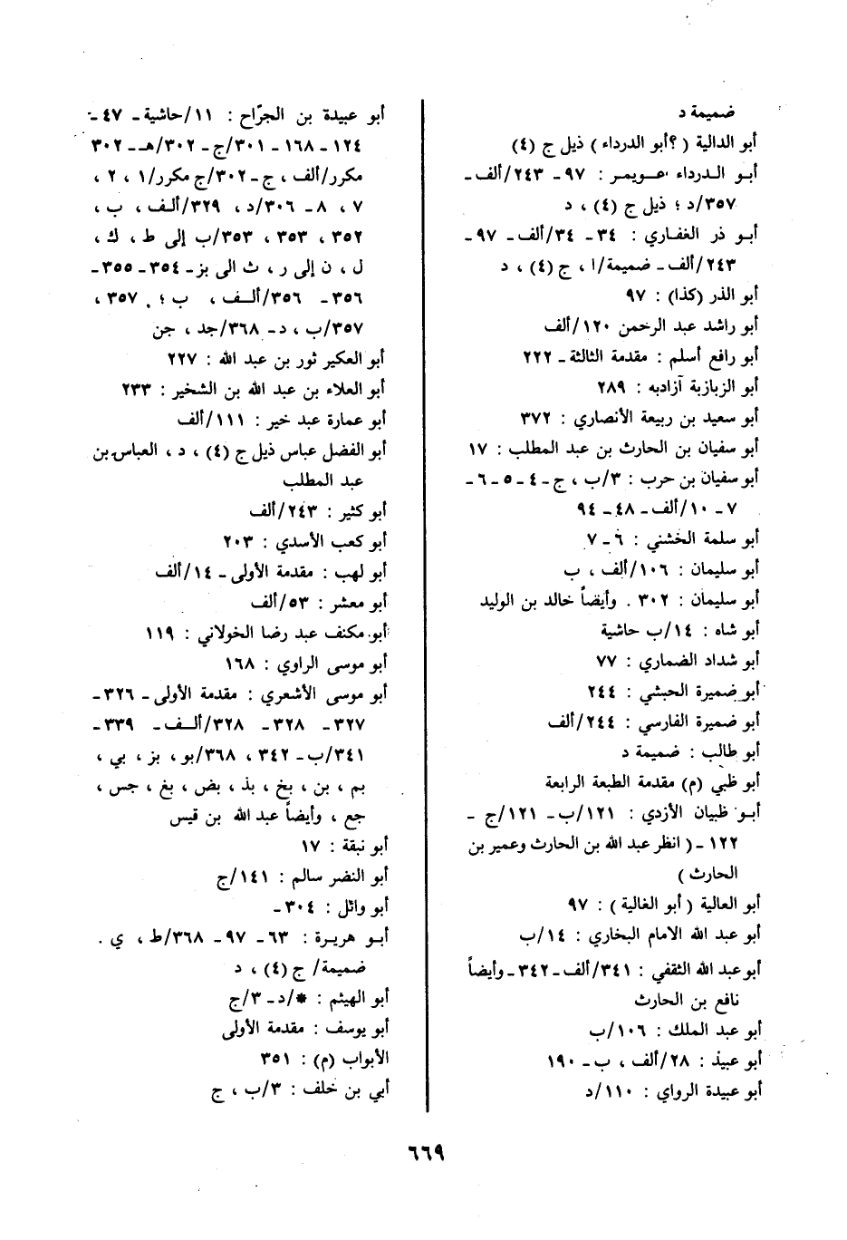 أبو عبيدة بن الجرّاح: 11/ حاشية- 47- 124- 168- 301/ ج- 302/ هـ- 302 مكرر/ ألف، ج- 302/ ج مكرر/ 1، 2، 7، 8- 306/ د، 329/ ألف، ب، 352، 353، 353/ ب إلى ط، ك، ل، ن إلى ر، ث الى بز- 354- 355- 356- 356/ ألف، ب؛ 357، 357/ ب، د- 368/ جد، جن