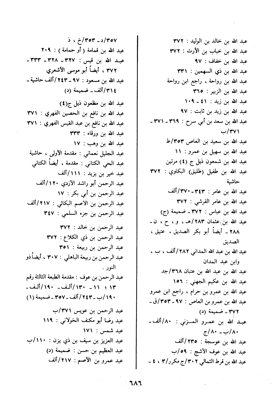 عبد الله بن قرط الثمالي 302/ ج مكرر/ 3، 4- 357/ د- 353/ خ، ذ