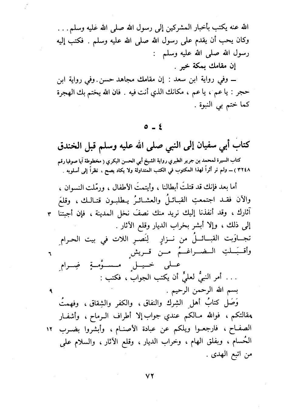 4- 5 كتاب أبي سفيان إلى النبي صلى الله عليه وسلم قبل الخندق