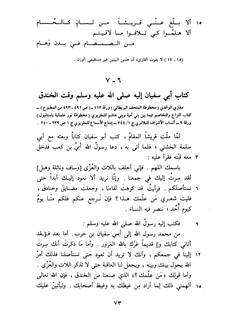 6- 7 كتاب أبي سفيان إليه صلى الله عليه وسلم وقت الخندق
