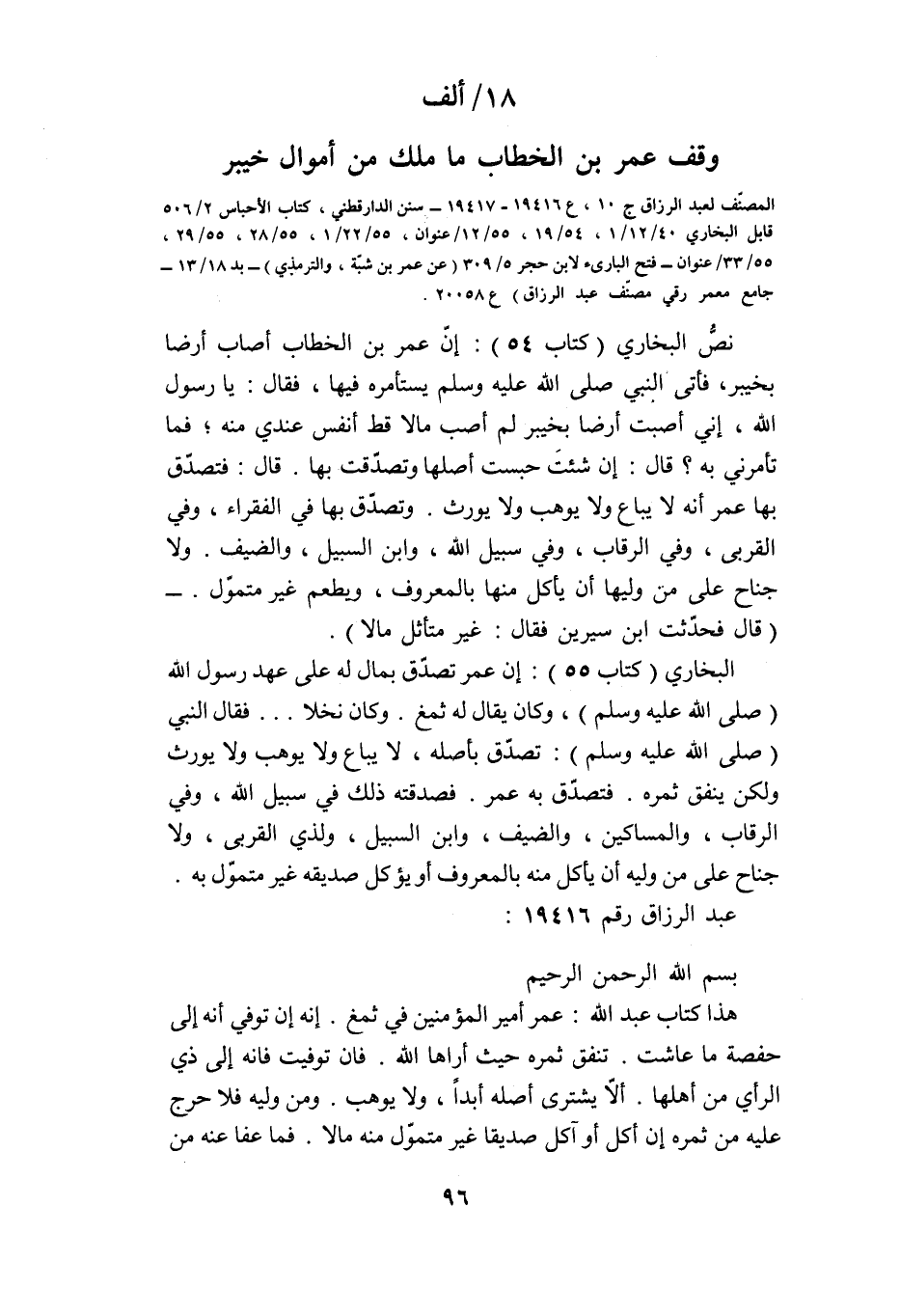 18/ ألف وقف عمر بن الخطاب ما ملك من أموال خيبر