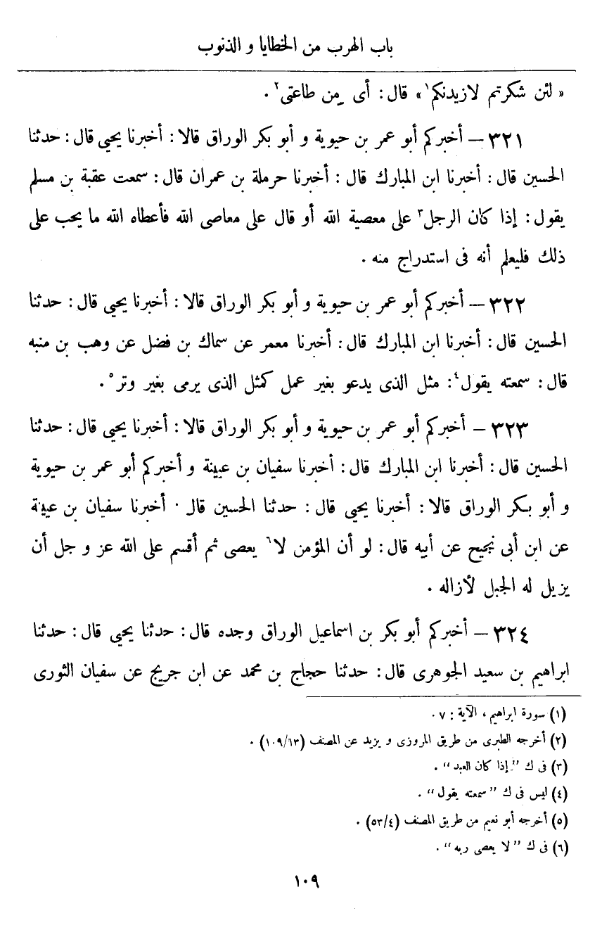 ٣٢٤ - أَخْبَرَكُمْ أَبُو إِسْمَاعِيلَ الْوَرَّاقُ وَحْدَهُ، أَخْبَرَنَا يَحْيَى، قَالَ: حَدَّثَنَا إِبْرَاهِيمُ بْنُ سَعِيدٍ الْجَوْهَرِيُّ قَالَ: حَدَّثَنَا حَجَّاجُ بْنُ مُحَمَّدٍ، عَنِ ابْنِ جُرَيْجٍ، عَنْ سُفْيَانَ الثَّوْرِيِّ ⦗١١٠⦘، عَنْ أَبِي حَازِمٍ قَالَ: «رَضِيَ النَّاسُ بِالْحَدِيثِ وَتَرَكُوا الْعَمَلَ»