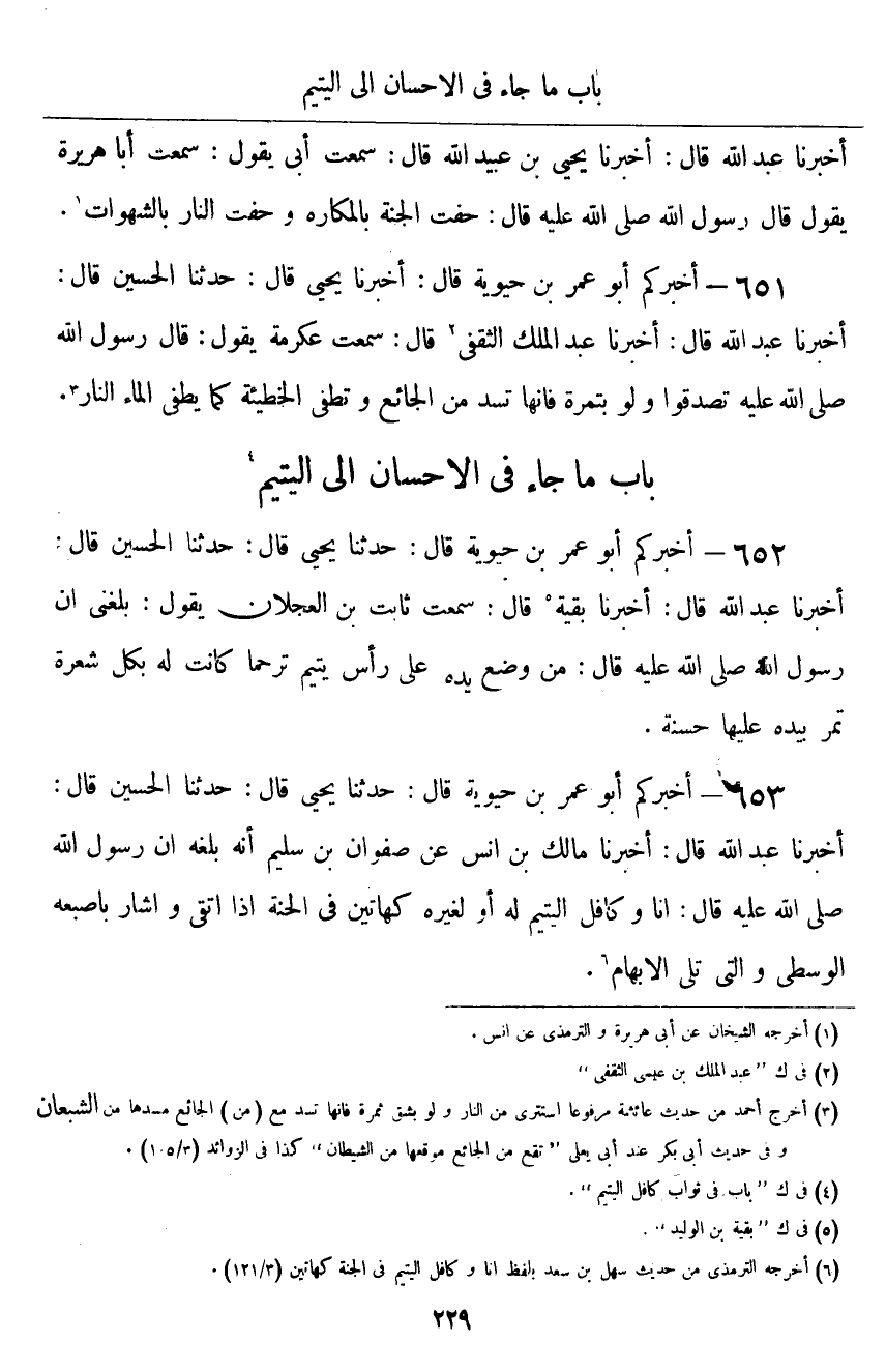 ٦٥٣ - أَخْبَرَكُمْ أَبُو عُمَرَ بْنُ حَيَوَيْهِ قَالَ: أَخْبَرَنَا يَحْيَى قَالَ: حَدَّثَنَا الْحُسَيْنُ قَالَ: أَخْبَرَنَا عَبْدُ اللَّهِ قَالَ: أَخْبَرَنَا مَالِكُ بْنُ أَنَسٍ، عَنْ صَفْوَانَ بْنِ سُلَيْمٍ أَنَّهُ بَلَغَهُ أَنَّ رَسُولَ اللَّهِ صَلَّى اللهُ عَلَيْهِ وَسَلَّمَ قَالَ: «أَنَا وَكَافِلُ الْيَتِيمِ لَهُ - أَوْ لِغَيْرِهِ - كَهَاتَيْنِ فِي الْجَنَّةِ إِذَا اتَّقَى» . وَأَشَارَ بِأُصْبُعِهِ الْوُسْطَى وَالَّتِي تَلِي الْإِبْهَامَ