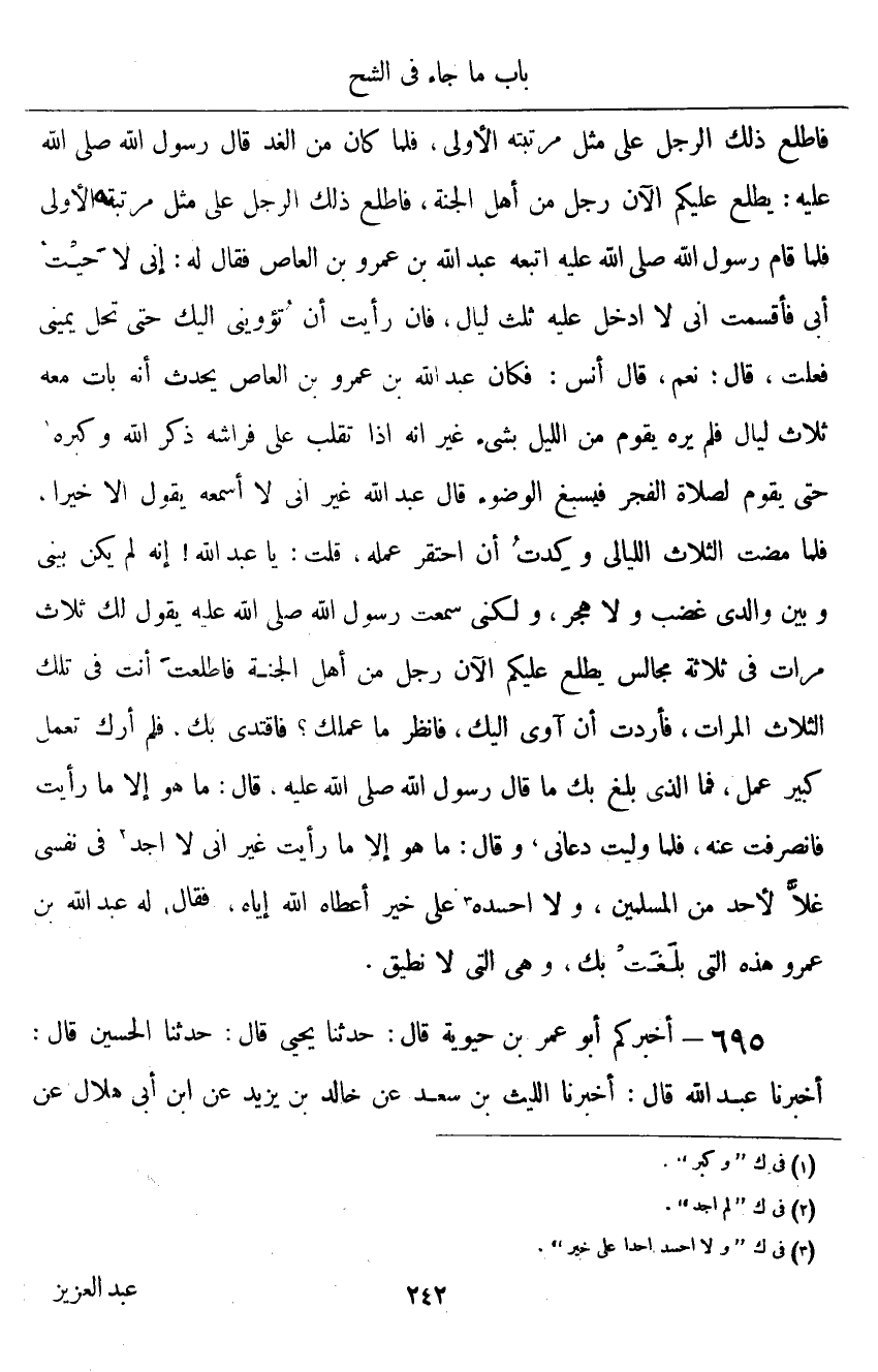 ٦٩٥ - أَخْبَرَكُمْ أَبُو عُمَرَ بْنُ حَيَوَيْهِ قَالَ: أَخْبَرَنَا يَحْيَى قَالَ: حَدَّثَنَا الْحُسَيْنُ قَالَ: أَخْبَرَنَا عَبْدُ اللَّهِ قَالَ: أَخْبَرَنَا اللَّيْثُ بْنُ سَعْدٍ، عَنْ خَالِدِ بْنِ يَزِيدَ، عَنِ ابْنِ أَبِي هِلَالٍ، عَنْ ⦗٢٤٣⦘ عَبْدِ الْعَزِيزِ بْنِ عَبْدِ الرَّحْمَنِ، عَنْ عَبْدِ بْنِ أُمِّ كِلَابٍ، أَوْ عَنْ رَجُلٍ - ابْنُ صَاعِدٍ يَشُكُّ - أَنَّهُ سَمِعَ عُمَرَ بْنَ الْخَطَّابِ وَهُوَ يَخْطُبُ النَّاسَ وَهُوَ يَقُولُ: «لَا يُعْجِبَنَّكُمْ مِنَ الرَّجُلِ طَنْطَنَتُهُ، وَلَكِنَّهُ مَنْ أَدَّى الْأَمَانَةَ، وَكَفَّ عَنْ أَعْرَاضِ النَّاسِ فَهُوَ الرَّجُلُ»