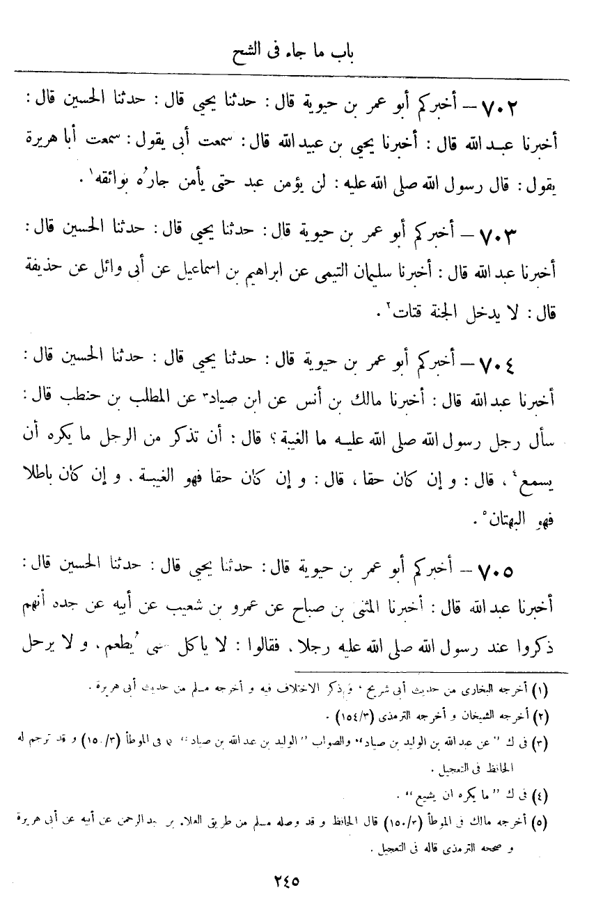 ٧٠٢ - أَخْبَرَكُمْ أَبُو عُمَرَ بْنُ حَيَوَيْهِ قَالَ: أَخْبَرَنَا يَحْيَى قَالَ: حَدَّثَنَا الْحُسَيْنُ قَالَ: أَخْبَرَنَا عَبْدُ اللَّهِ قَالَ: أَخْبَرَنَا يَحْيَى بْنُ عُبَيْدِ اللَّهِ قَالَ: سَمِعْتُ أَبِي يَقُولُ: سَمِعْتُ أَبَا هُرَيْرَةَ يَقُولُ: قَالَ رَسُولُ اللَّهِ صَلَّى اللهُ عَلَيْهِ وَسَلَّمَ: «لَنْ يُؤْمِنَ عَبْدٌ حَتَّى يَأْمَنَ جَارُهُ بَوَائِقَهُ»