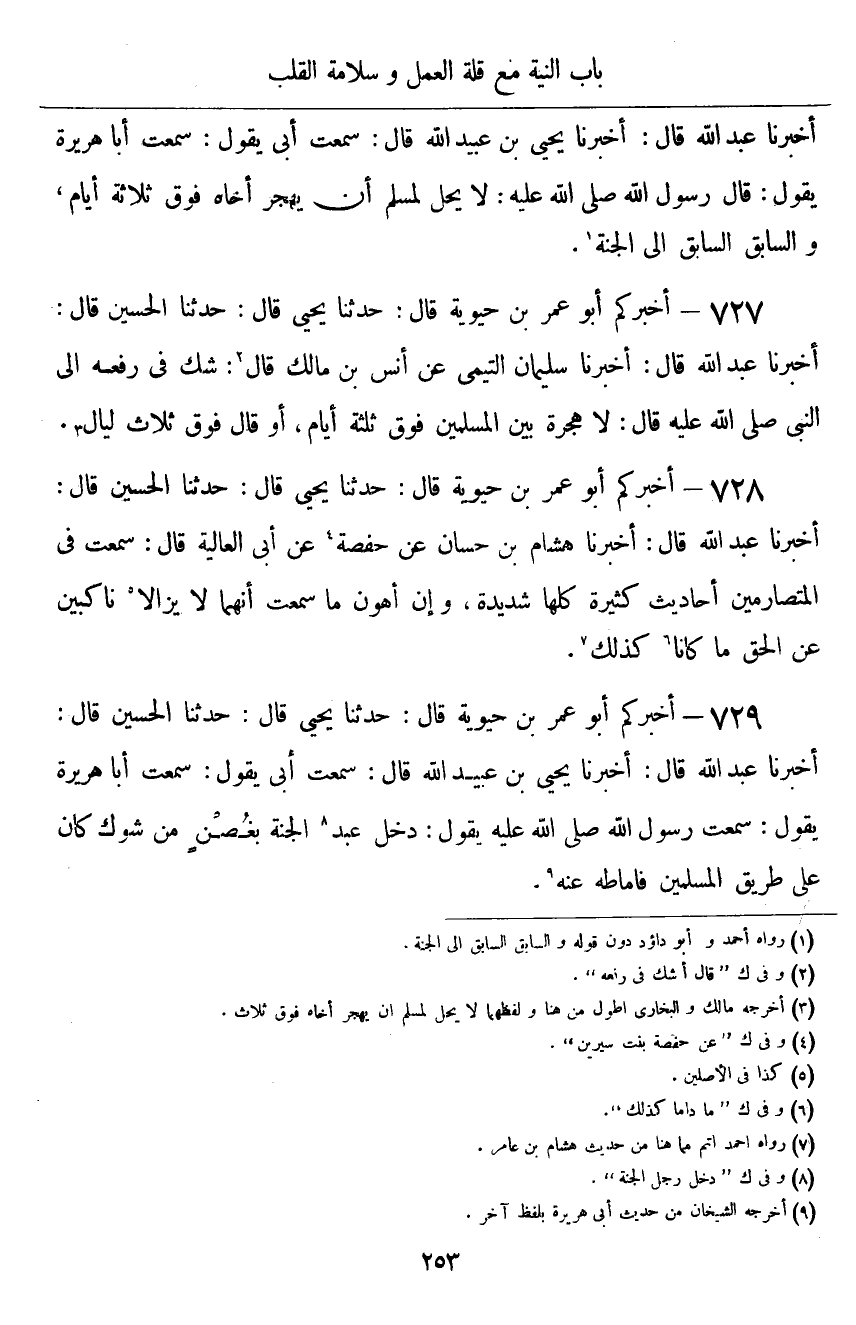 ٧٢٧ - أَخْبَرَكُمْ أَبُو عُمَرَ بْنُ حَيَوَيْهِ قَالَ: أَخْبَرَنَا يَحْيَى قَالَ: حَدَّثَنَا الْحُسَيْنُ قَالَ: أَخْبَرَنَا عَبْدُ اللَّهِ قَالَ: أَخْبَرَنَا سُلَيْمَانُ التَّيْمِيُّ، عَنْ أَنَسِ بْنِ مَالِكٍ قَالَ: شَكَّ فِي رَفْعِهِ إِلَى النَّبِيِّ صَلَّى اللهُ عَلَيْهِ وَسَلَّمَ، قَالَ: «لَا هِجْرَةَ بَيْنَ الْمُسْلِمِينَ فَوْقَ ثَلَاثَةِ أَيَّامٍ» ، أَوْ قَالَ: «فَوْقَ ثَلَاثِ لَيَالٍ»